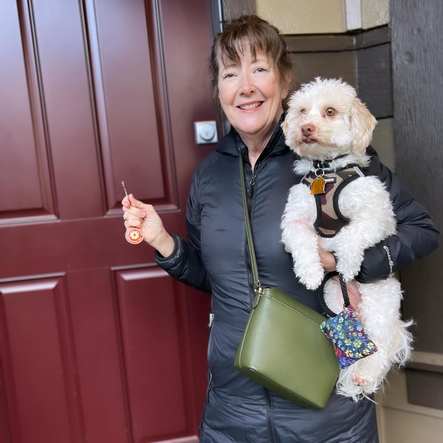 Yesterday I handed Ellen the keys. Sister-in-law (and interior designer) Diane was there to celebrate and take measurements. Ellen’s pup Charley was also excited to claim this new home as his own! Within 24 hours, Ellen was already painting the primary. Like I said – a woman of action.