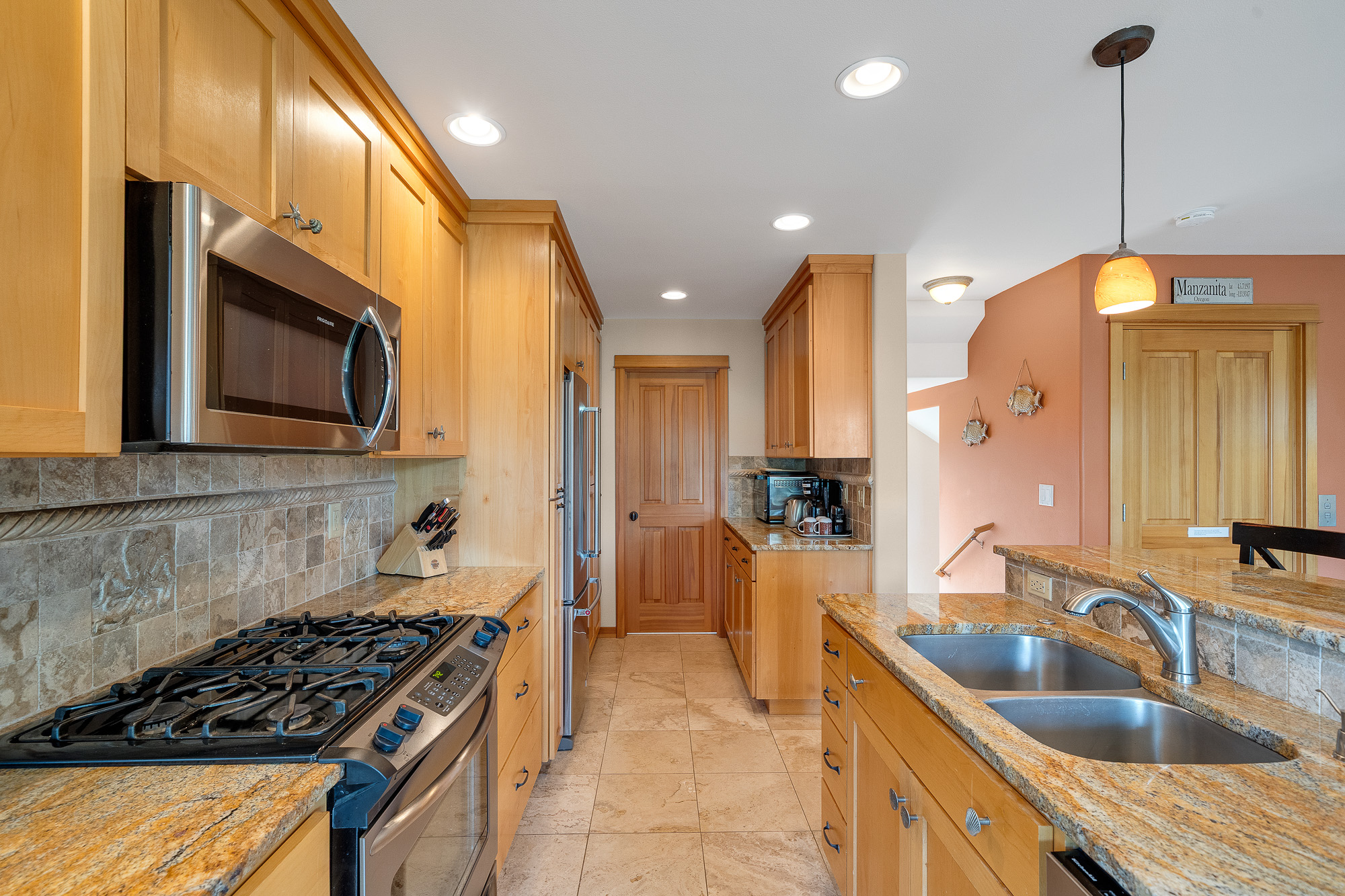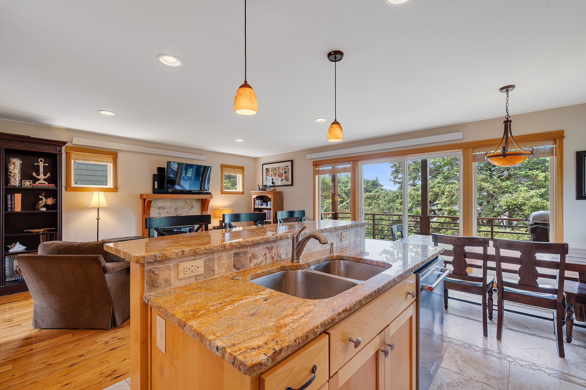 Steps from the beach, this 3 bedroom, 2.1 bathroom end-unit condo offers a partial  ocean & Neahkahnie Mountain views. Make your way between the floors with the interior elevator. The home features two covered decks, one off the main living area & another shared by the two lower bedrooms providing usable outdoor space year-round. The great room located on the middle floor includes a gas fireplace, hardwood floors, and a custom kitchen with live-edge granite surfaces, stainless appliances, & alder cabinets. The top floor, primary suite, features vaulted wood ceilings & an ensuite bath. The home is being offered as furnished. Located near walking paths for you to enjoy Manzanita shops, golf, & Nehalem Bay State Park trails. Call your broker to schedule a viewing & for more info.
