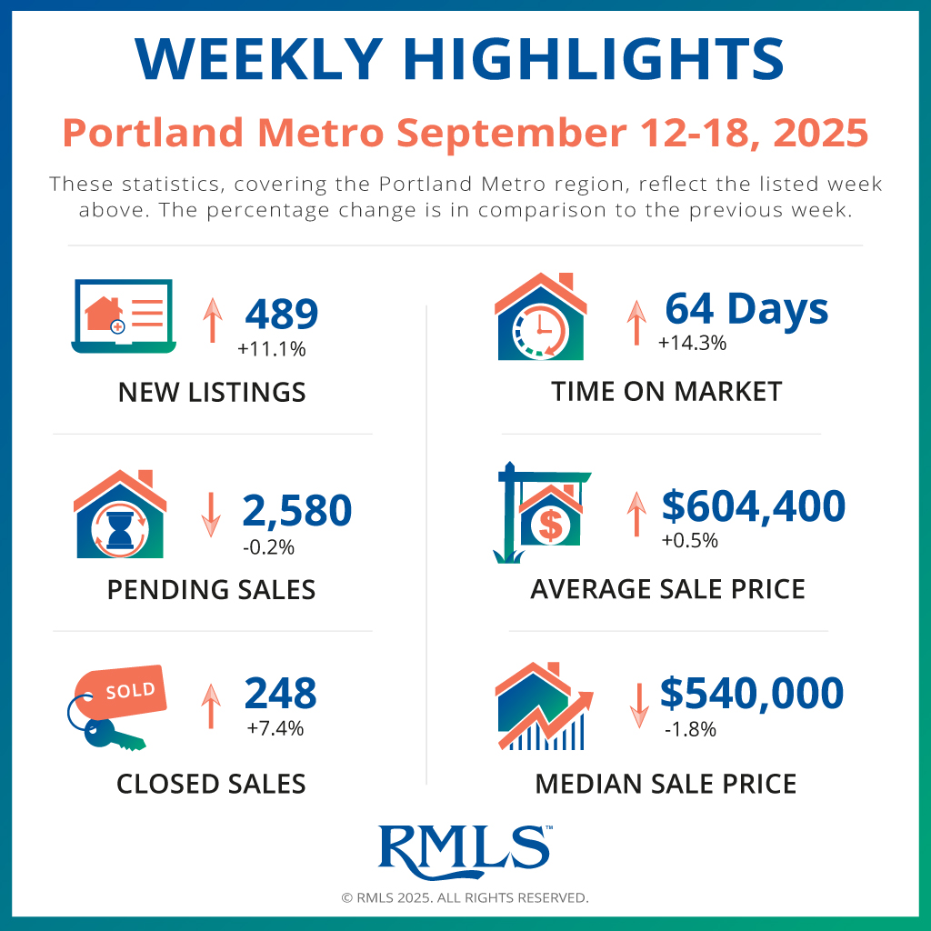 Here’s the truth: if you want to win in this market, you need a winning strategy. Right now, inventory is up 12% over last year, giving buyers more choice. On a single day, you could see five or six solid options that meet your goals hit the market. Prices are also working in your favor — the 7-day average list price in the Portland Metro was around $700,000 back in June, and today’s median sits just under $660,000. New listings are averaging around $629,000.