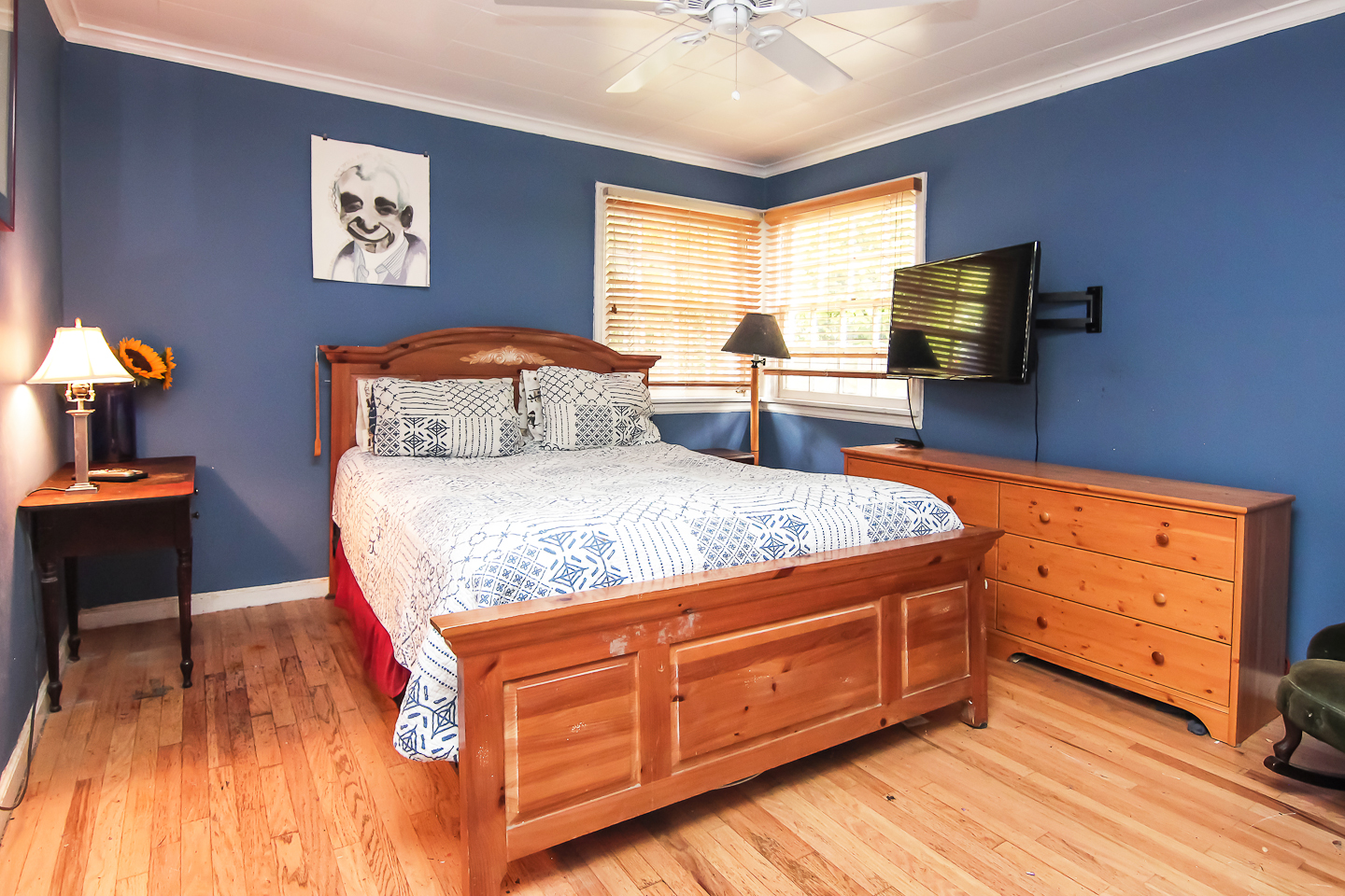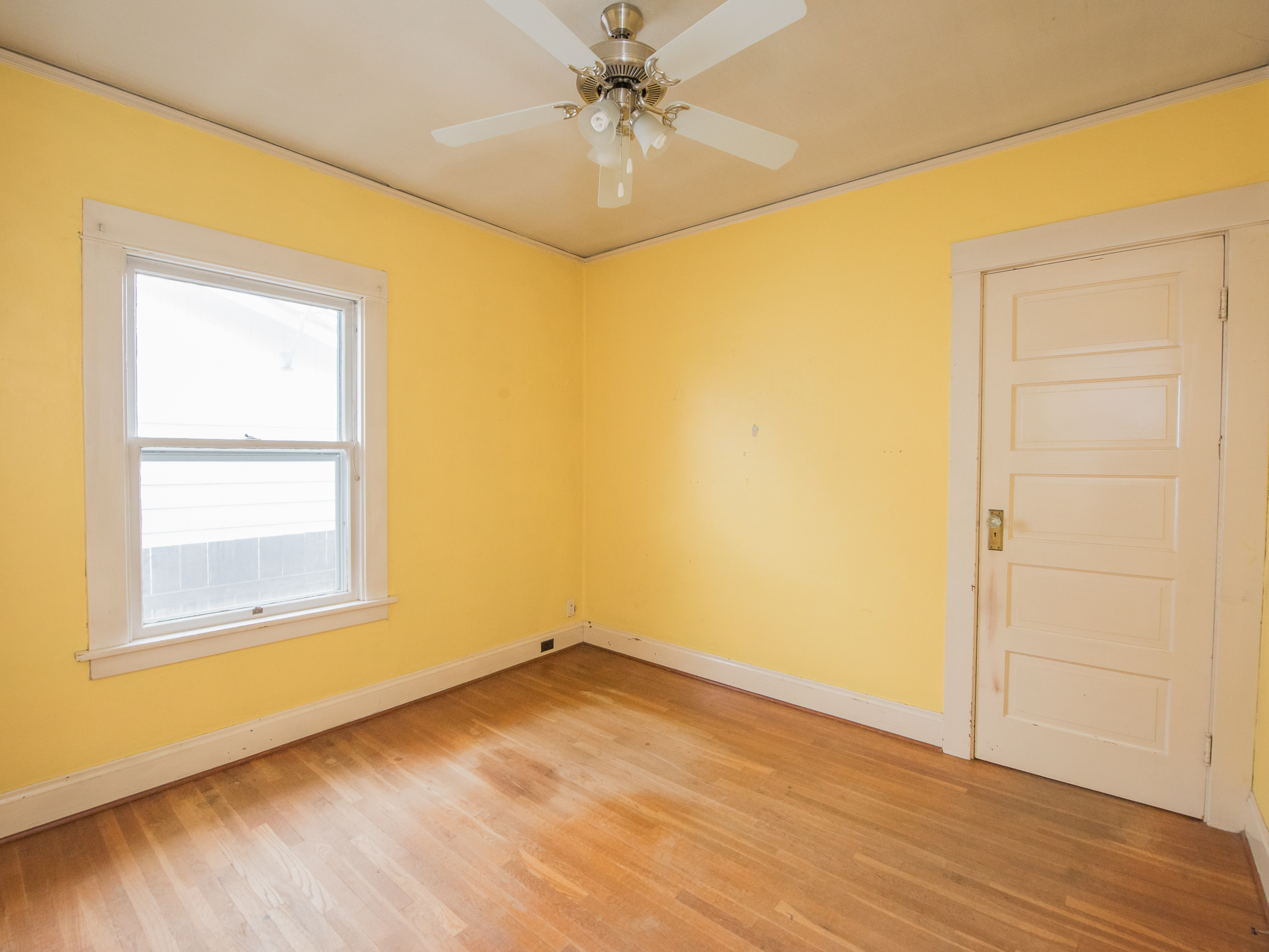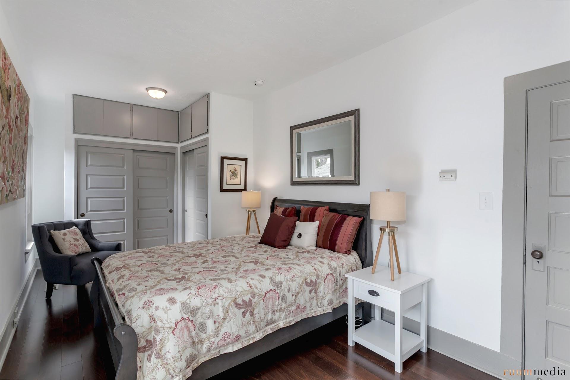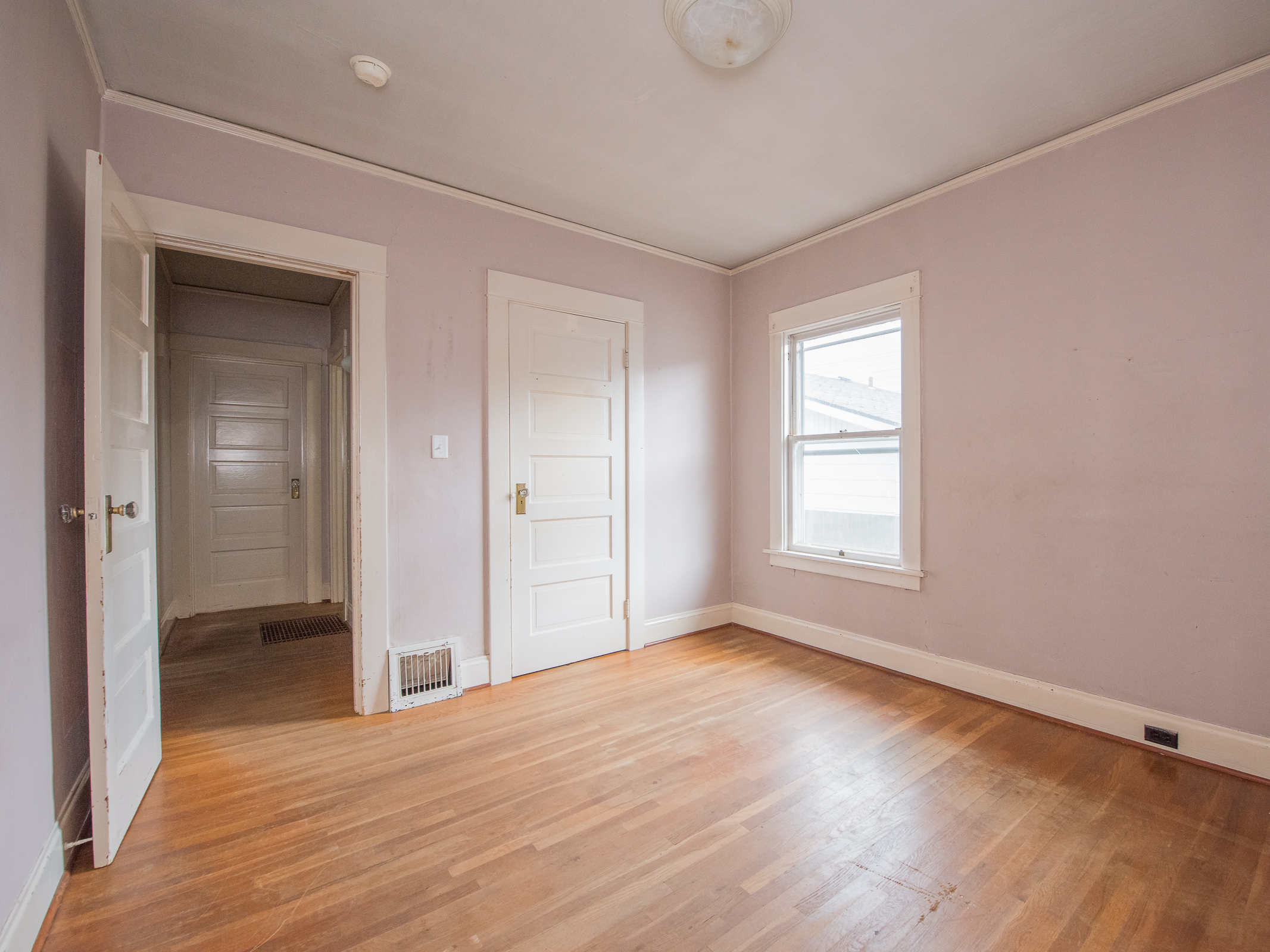 The master bedrooms, and all the bedrooms for that matter, are gleaming with the new refinished floors and a fresh coat of paint. These light fixtures were original and in good shape, so of course we kept them. You may notice wall cadet heaters were in all of the rooms. That’s how the house was heated. We opted for a major upgrade with all new ducting and a high efficient furnace. No more electric heat.