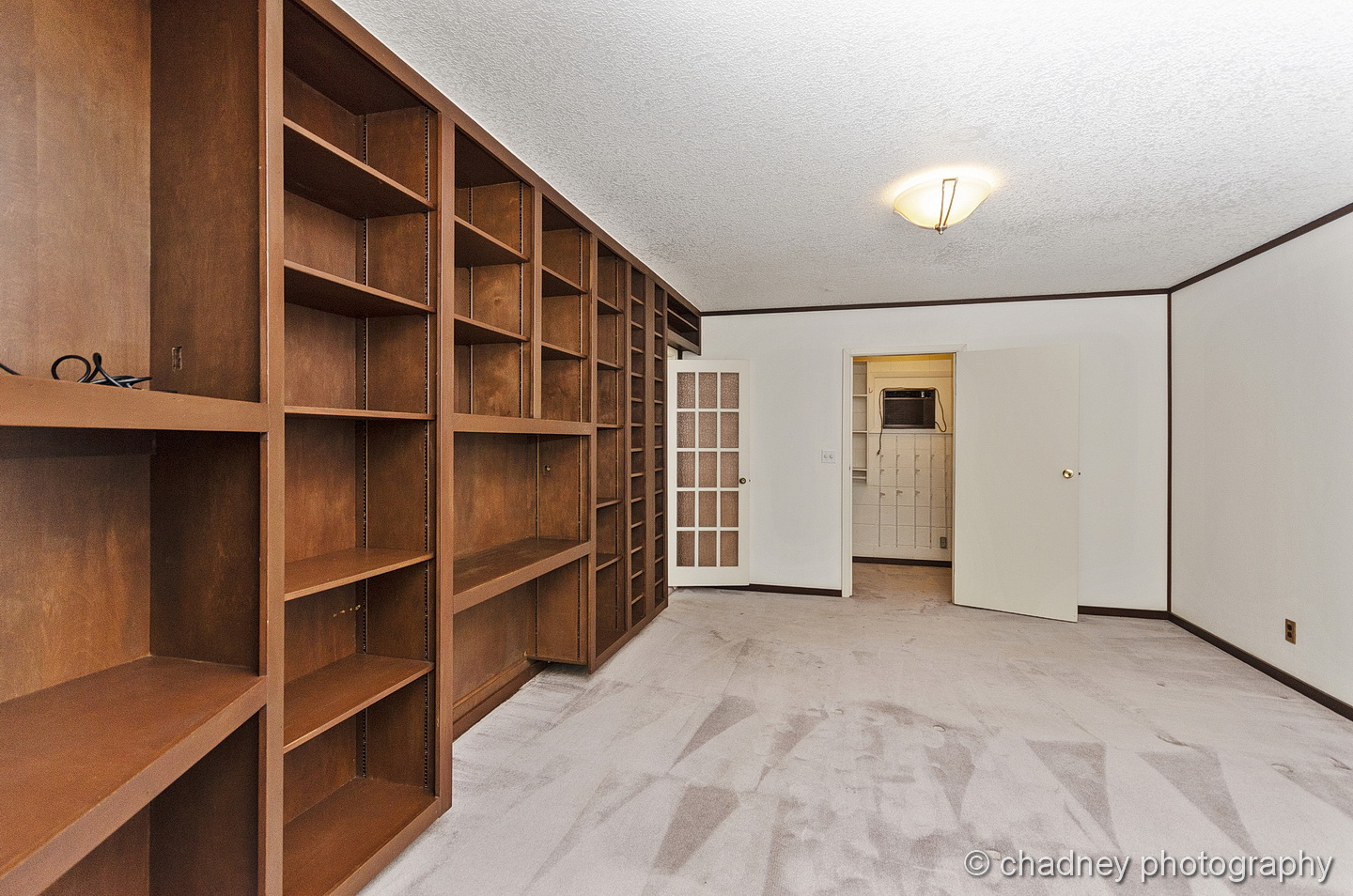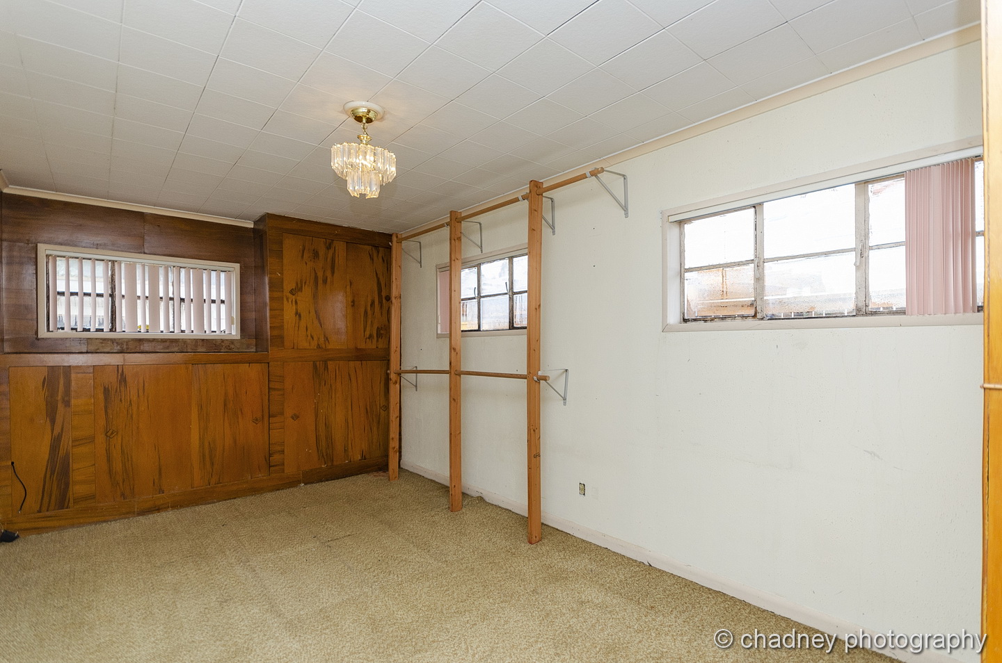 The living room had rare wooden vaulted ceilings for this era of house. We freshened up the space, replaced the carpet, got rid of the wood paneling from the walls, and added a large, new modern light fixture.  This room now feels completely inviting, and one you want to hang out in.