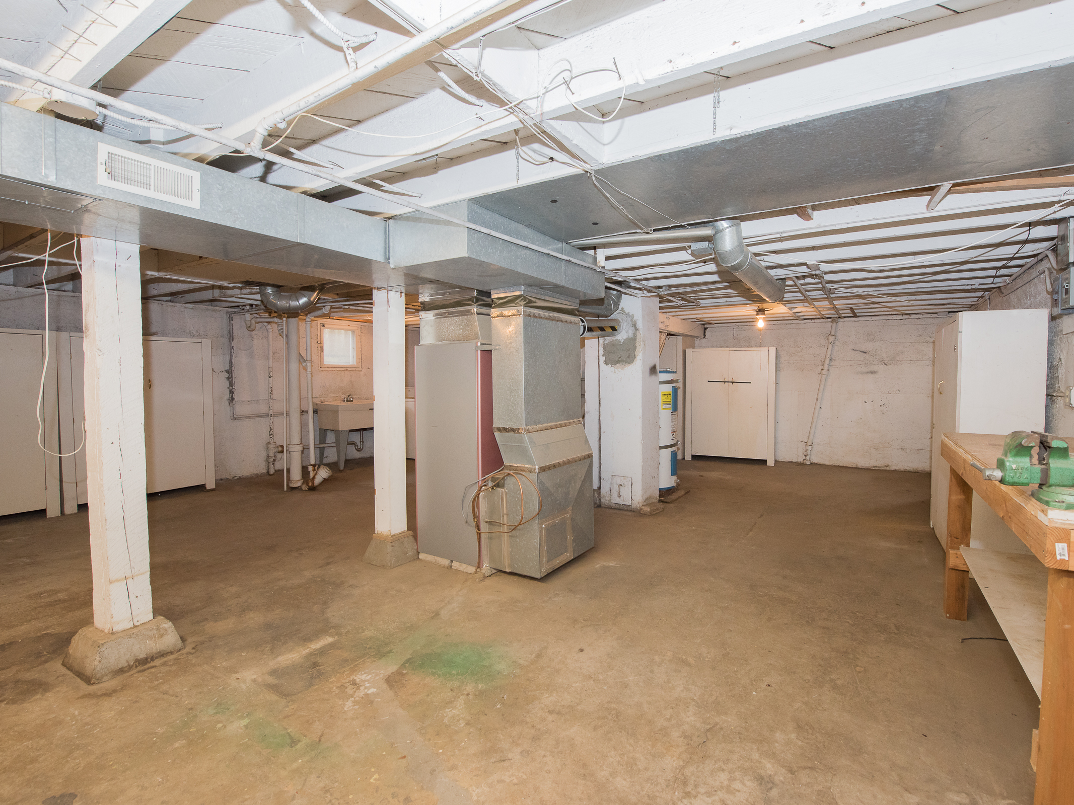 2 beds on Main, 2 Upper w/ Loft/Built-ins, large Bath on Main, huge Kitchen / Dining Room area, Massive 1000sf Basement w/ tall ceilings and Sliding barn doors to side yard, Detached Garage, West facing sunny Backyard. Washer/Dryer included, Oil furnace w/ exterior stand-up tank