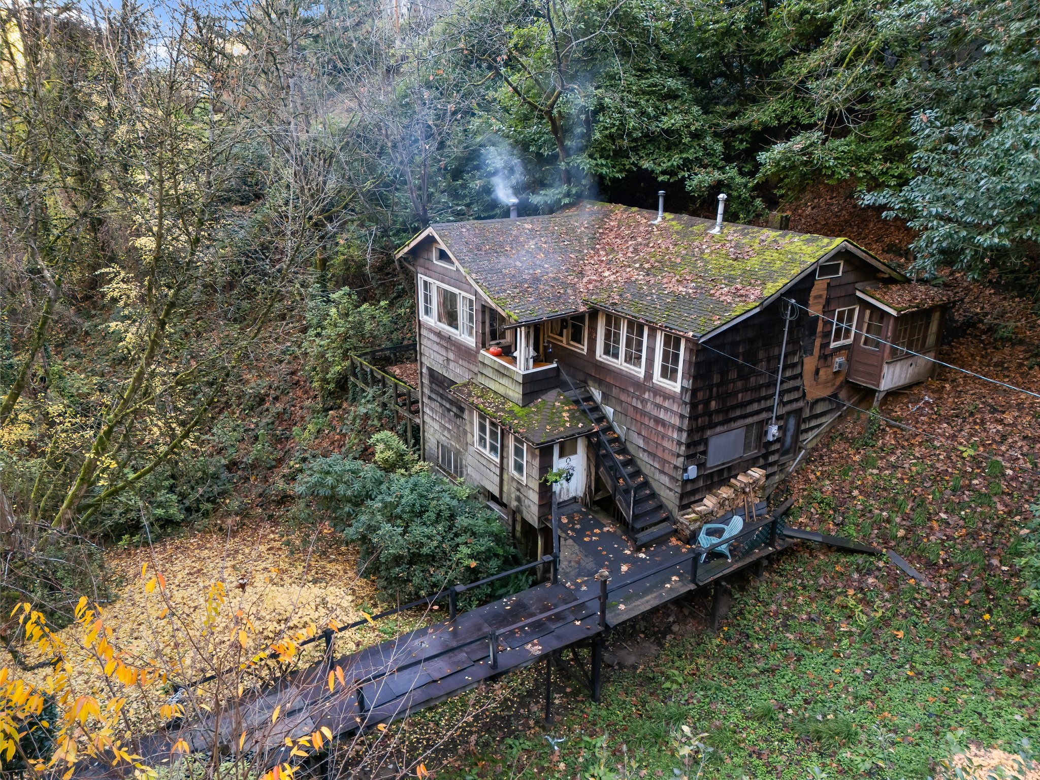 Spacious Mid Century cosmetic fixer featuring 4 beds, 2.5 baths w/ classic details on quiet, wooded, private lot, hardwoods, 2 fireplaces, finished lower level, spacious kitchen w/ eating bar, newer vinyl windows. Lifetime ceramic roof. 3 Patio doors to extensive deck, Outdoor frplce. Multigenerational family living? Tenant occupied – do not disturb, Make offers subject to interior inspection. Final sales price subject to bank approval. 3800 SE Licyntra Lane, $399,000