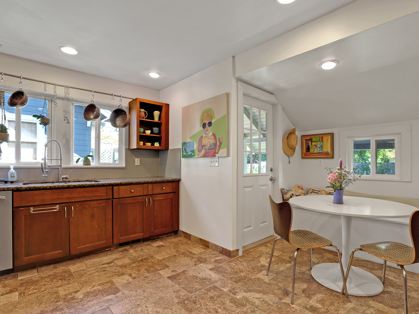 - Eat-in nook with built-in benches: