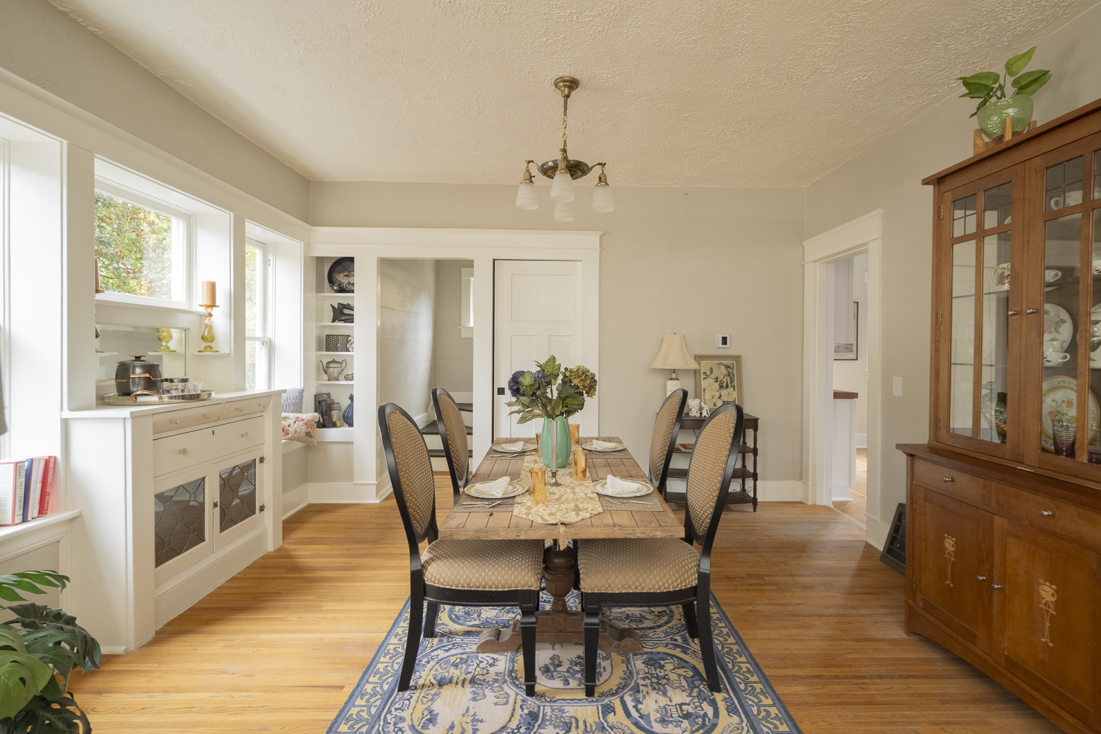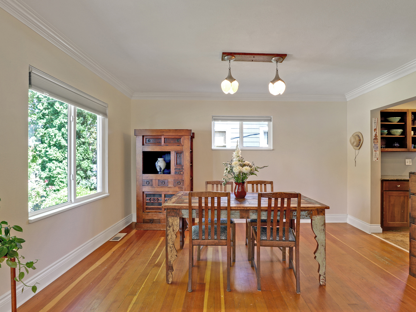 - Original divided light windows in the dining area