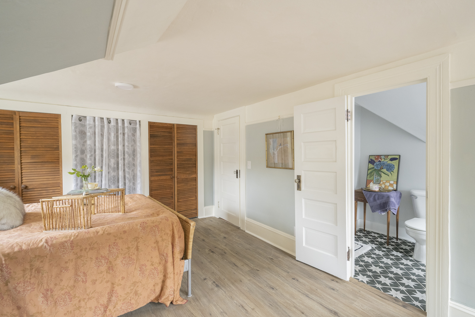 - Original solid wood doors in bedrooms and bathroom