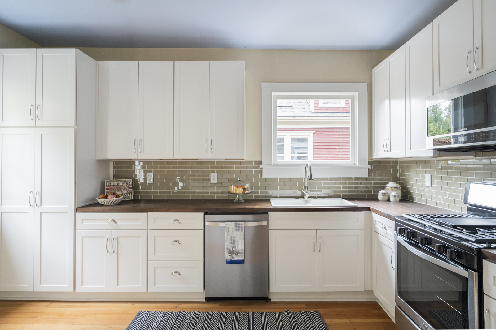 - Freshly painted cabinets