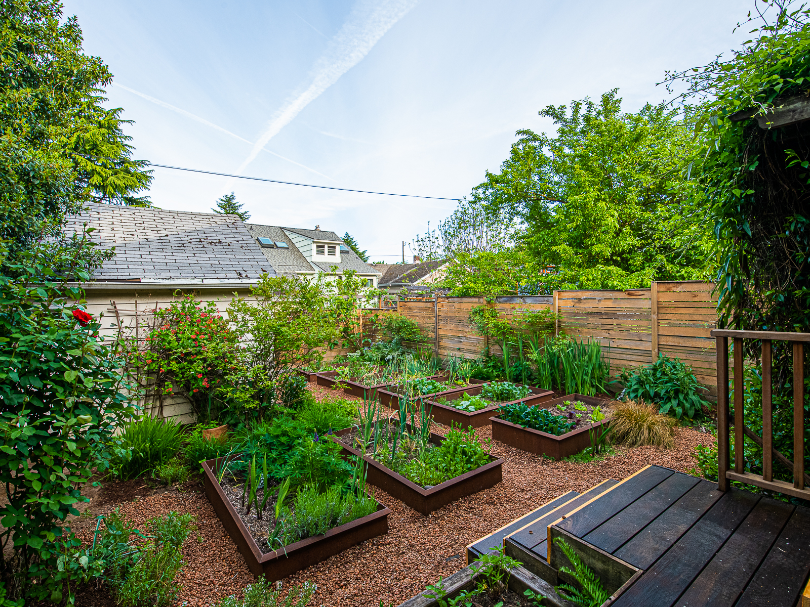 Play larger on the beautiful, oversized 0.23 acre lot. It’s sunny with ample southern and western exposure, complete with raised beds, perennials, fruit trees and a firepit, and the backyard is fenced and private. There is also a 300+sf detached garage and shop space for all of your tools, bikes and gear, as well as a long and partially-gated driveway that could accommodate multiple cars, a boat trailer or R/V.