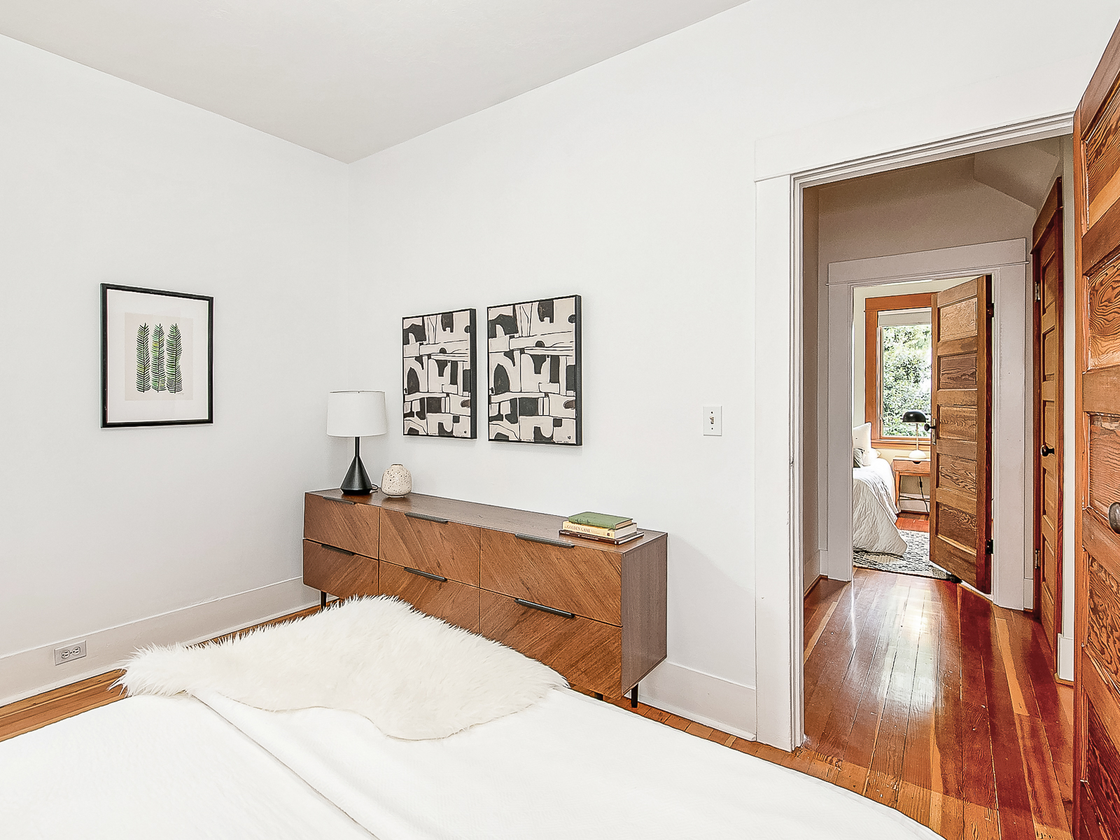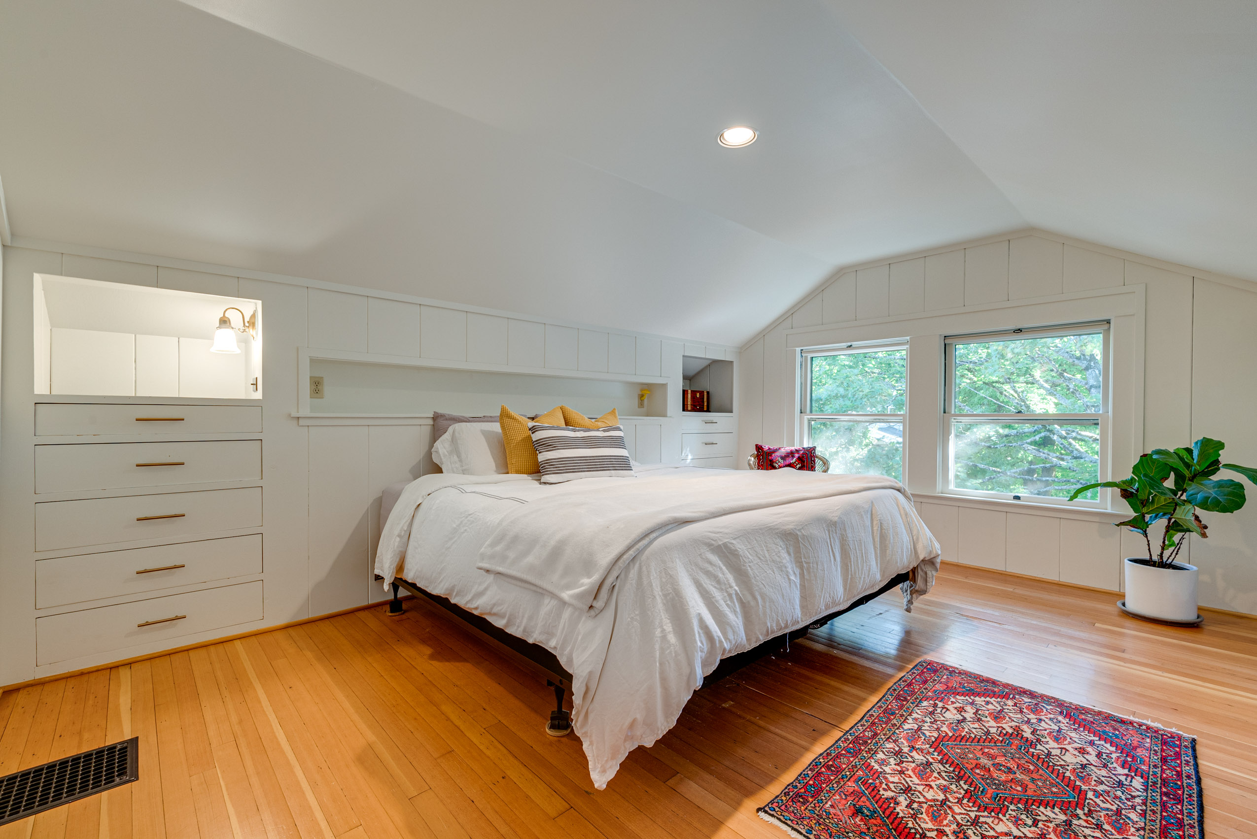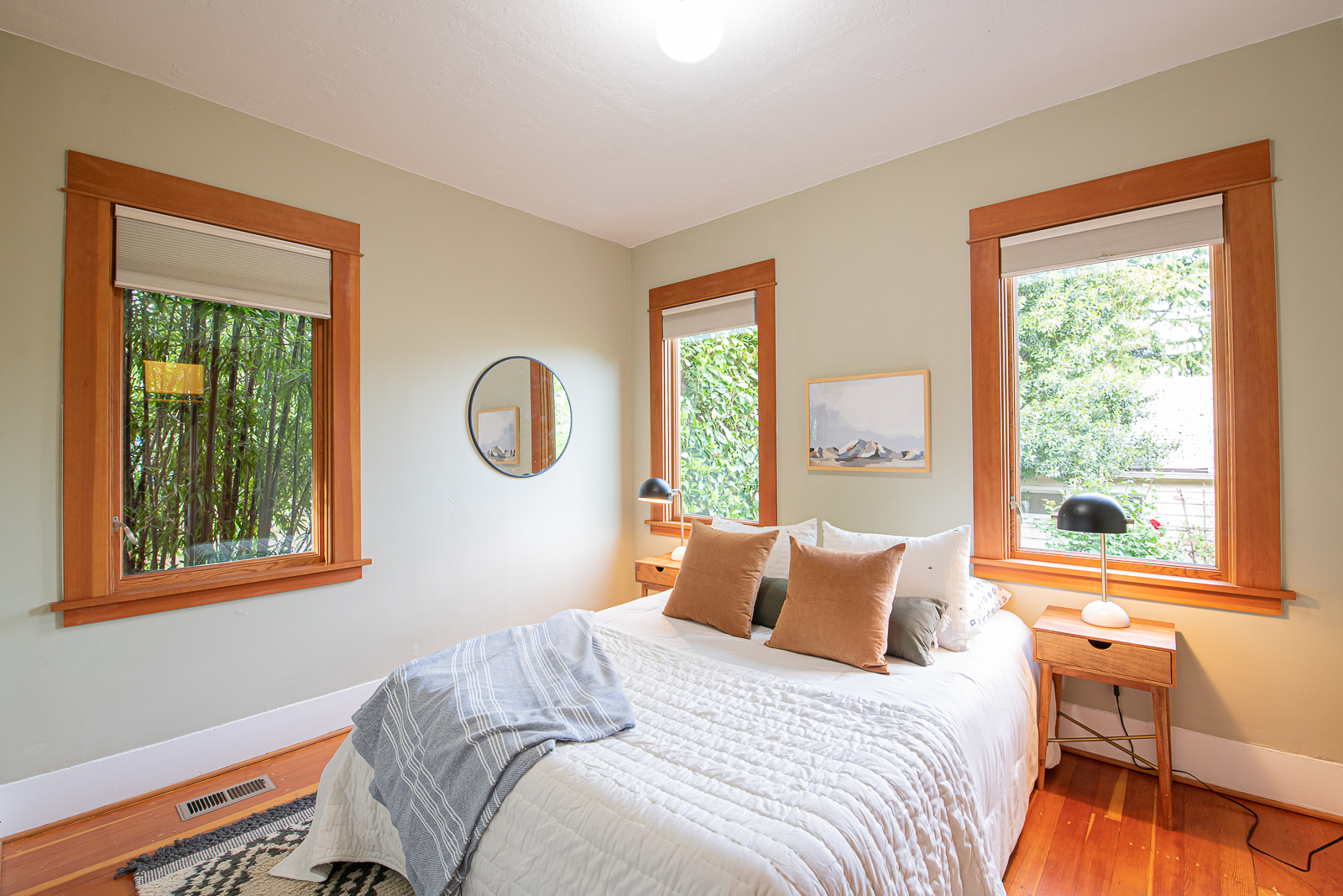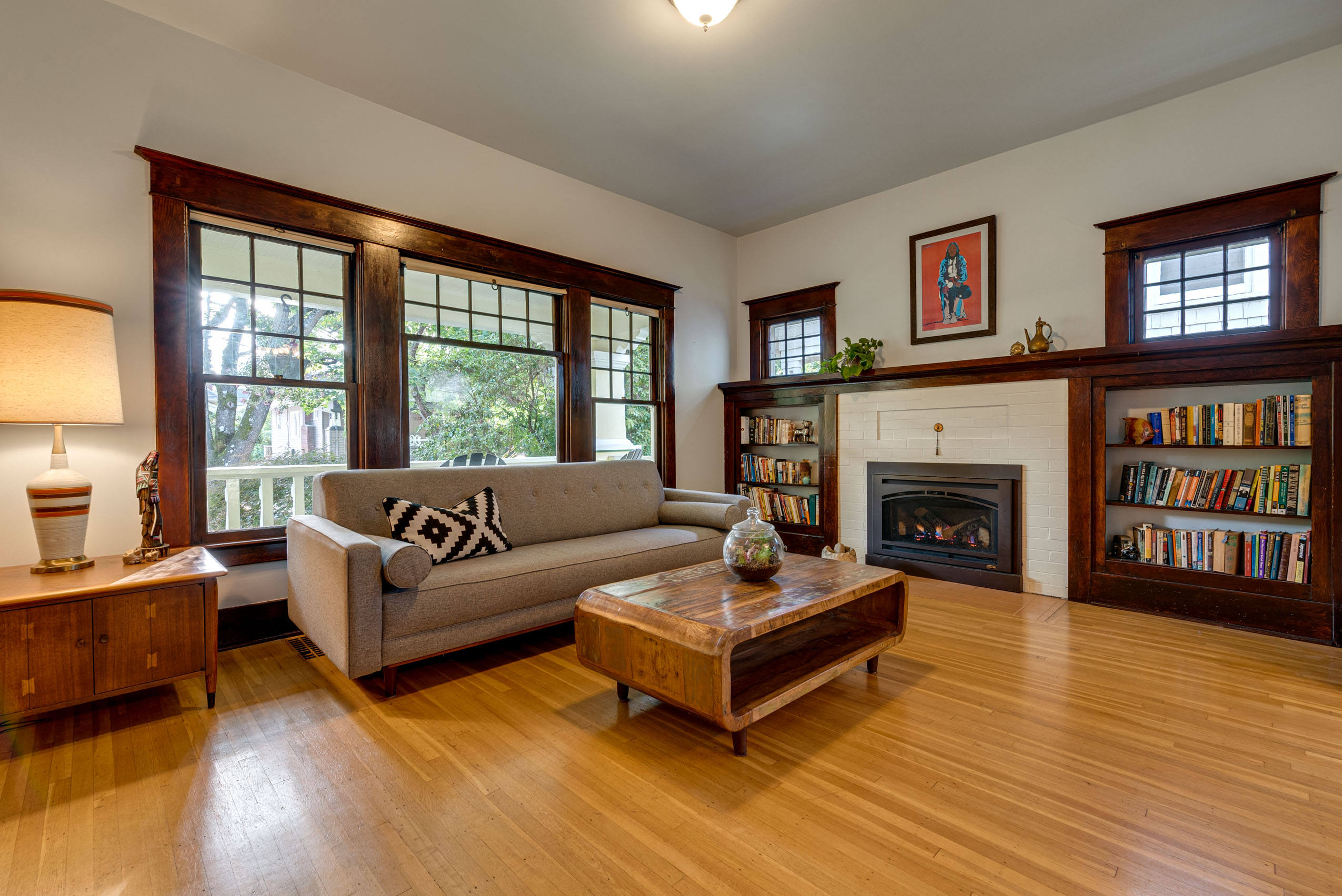The upper level boasts three bedrooms, a large full bathroom, original built-ins, and a bonus nook. On clear days, there is even a peekaboo view of Mt. Hood from the front room. Finally, if all of that isn’t enough, the lower level has been fully converted, with two bedrooms and ample storage spaces, as well as a custom-built bar in a bonus living room for endless entertainment possibilities.