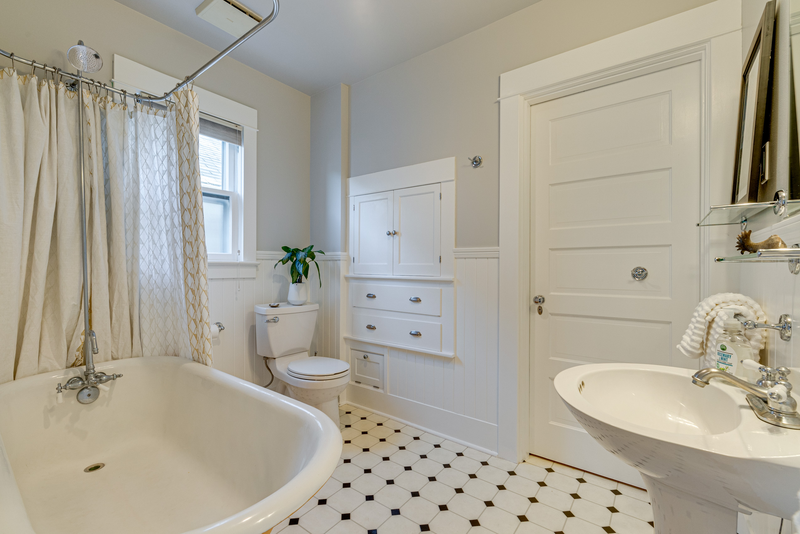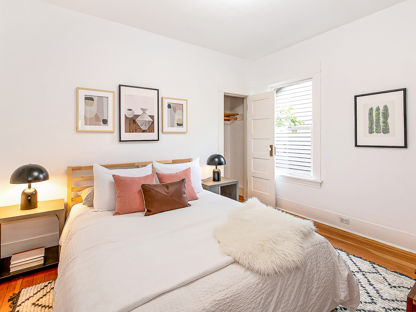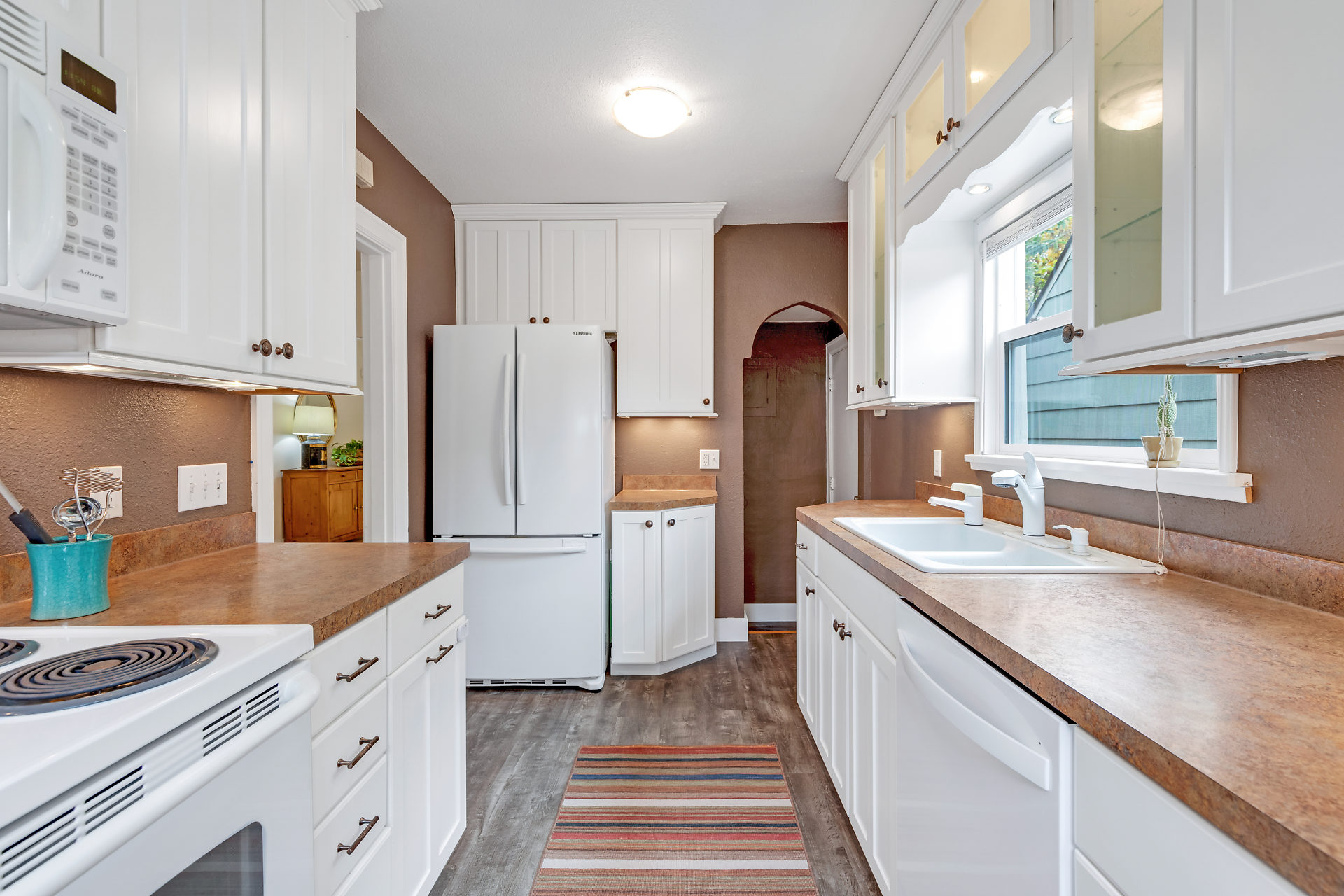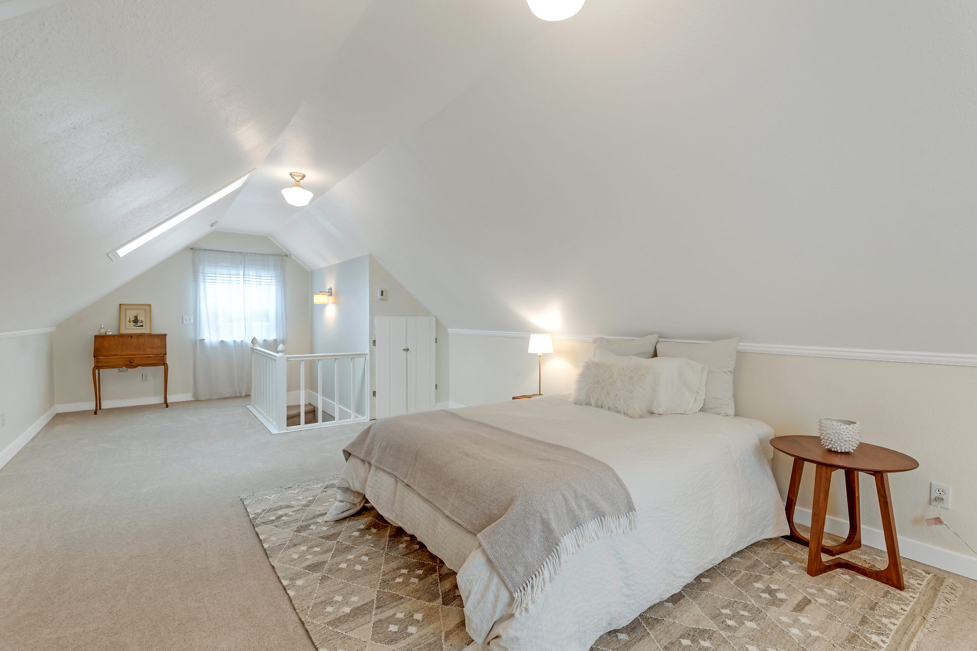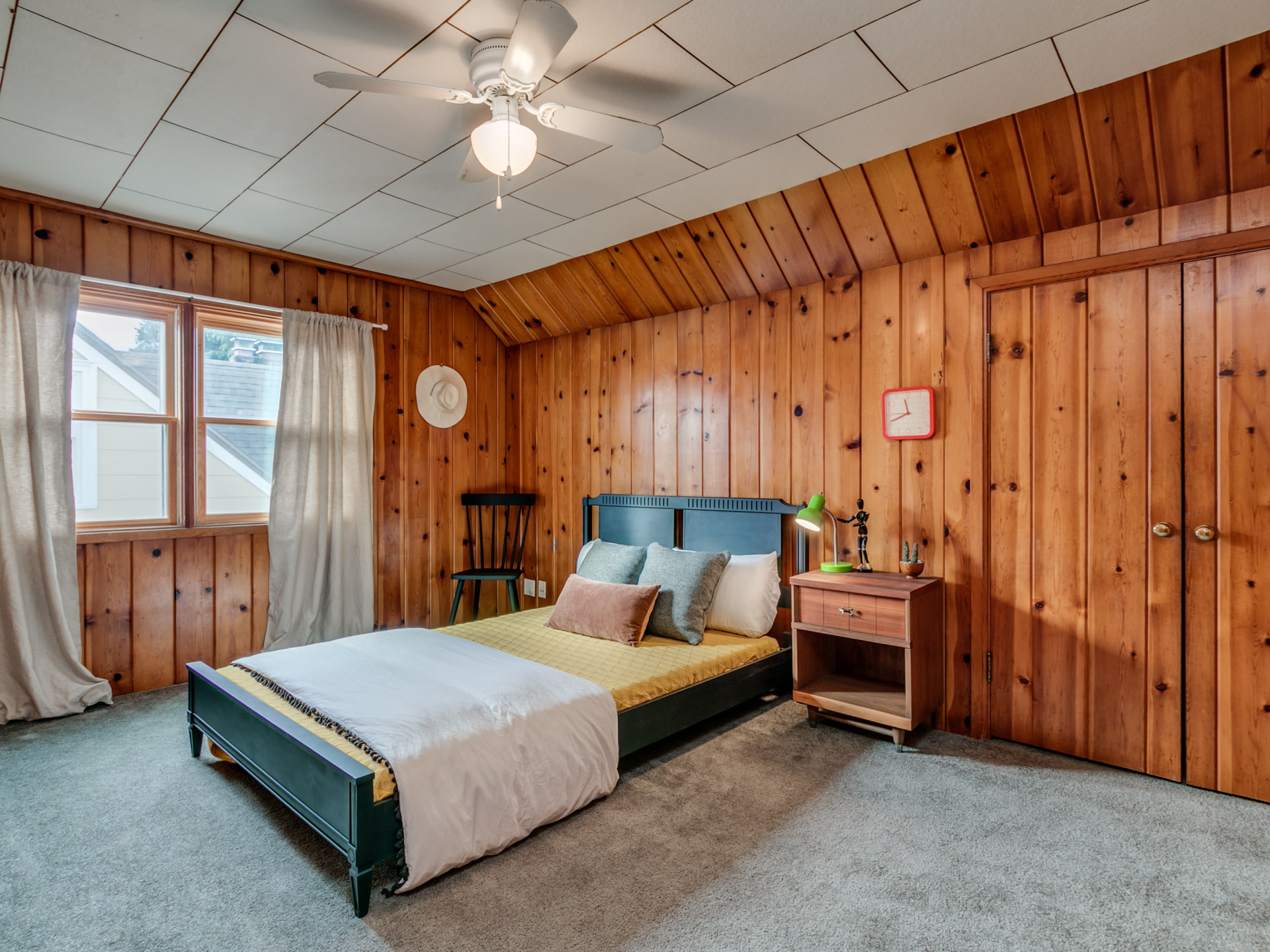 The upper level boasts three bedrooms, a large full bathroom, original built-ins, and a bonus nook. On clear days, there is even a peekaboo view of Mt. Hood from the front room. Finally, if all of that isn’t enough, the lower level has been fully converted, with two bedrooms and ample storage spaces, as well as a custom-built bar in a bonus living room for endless entertainment possibilities.