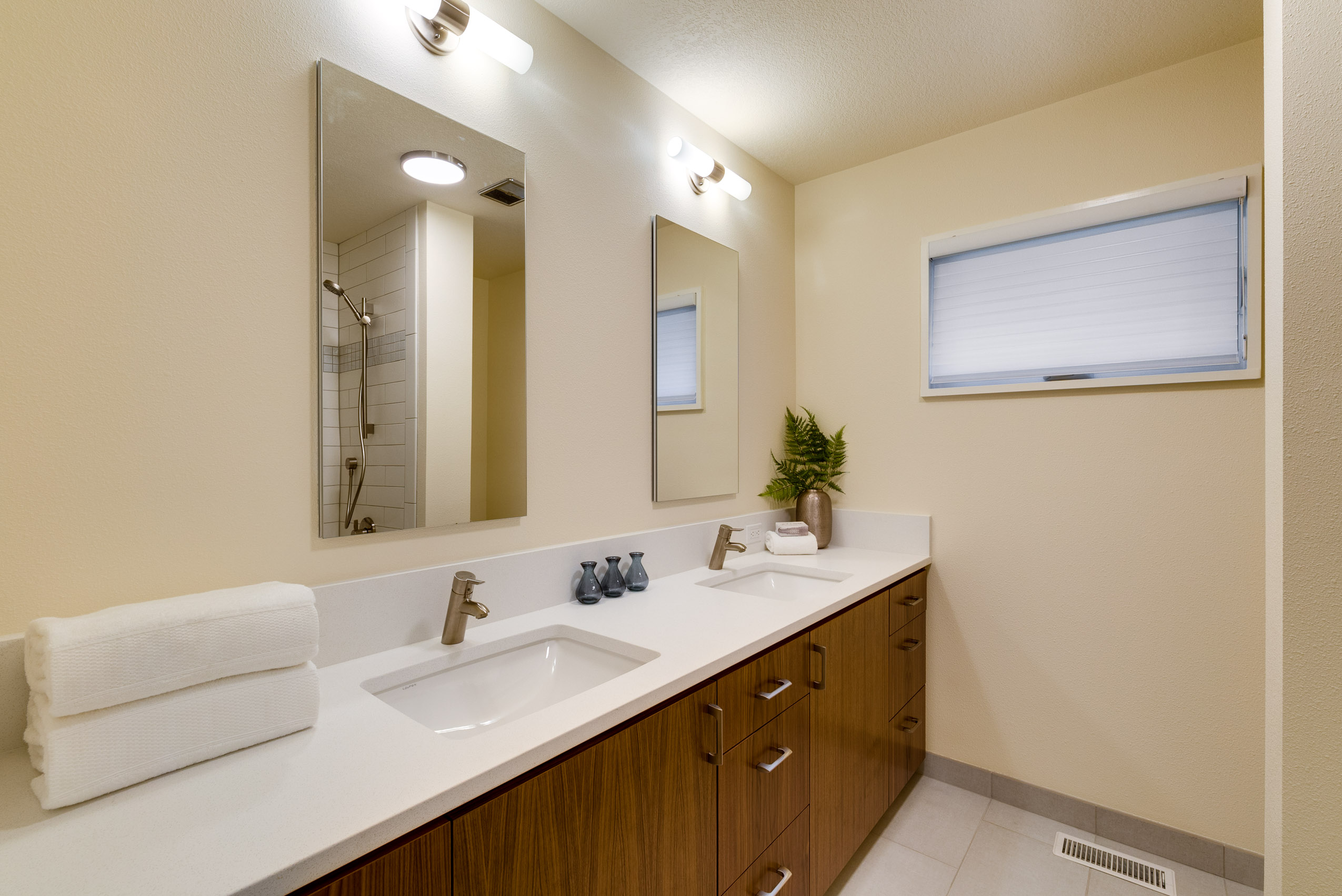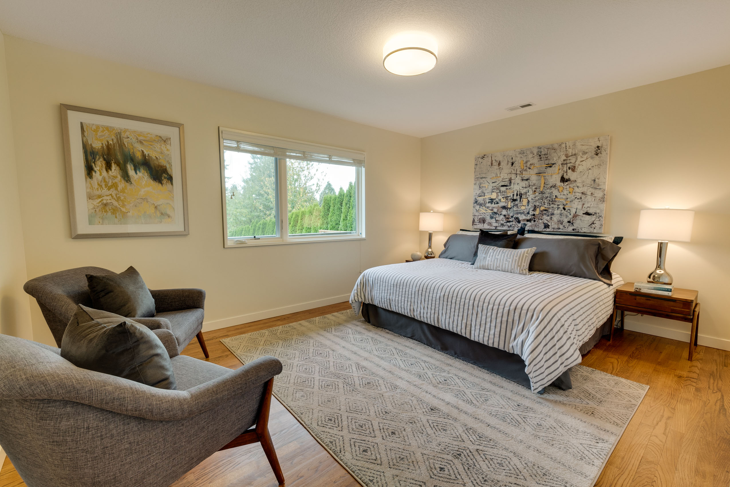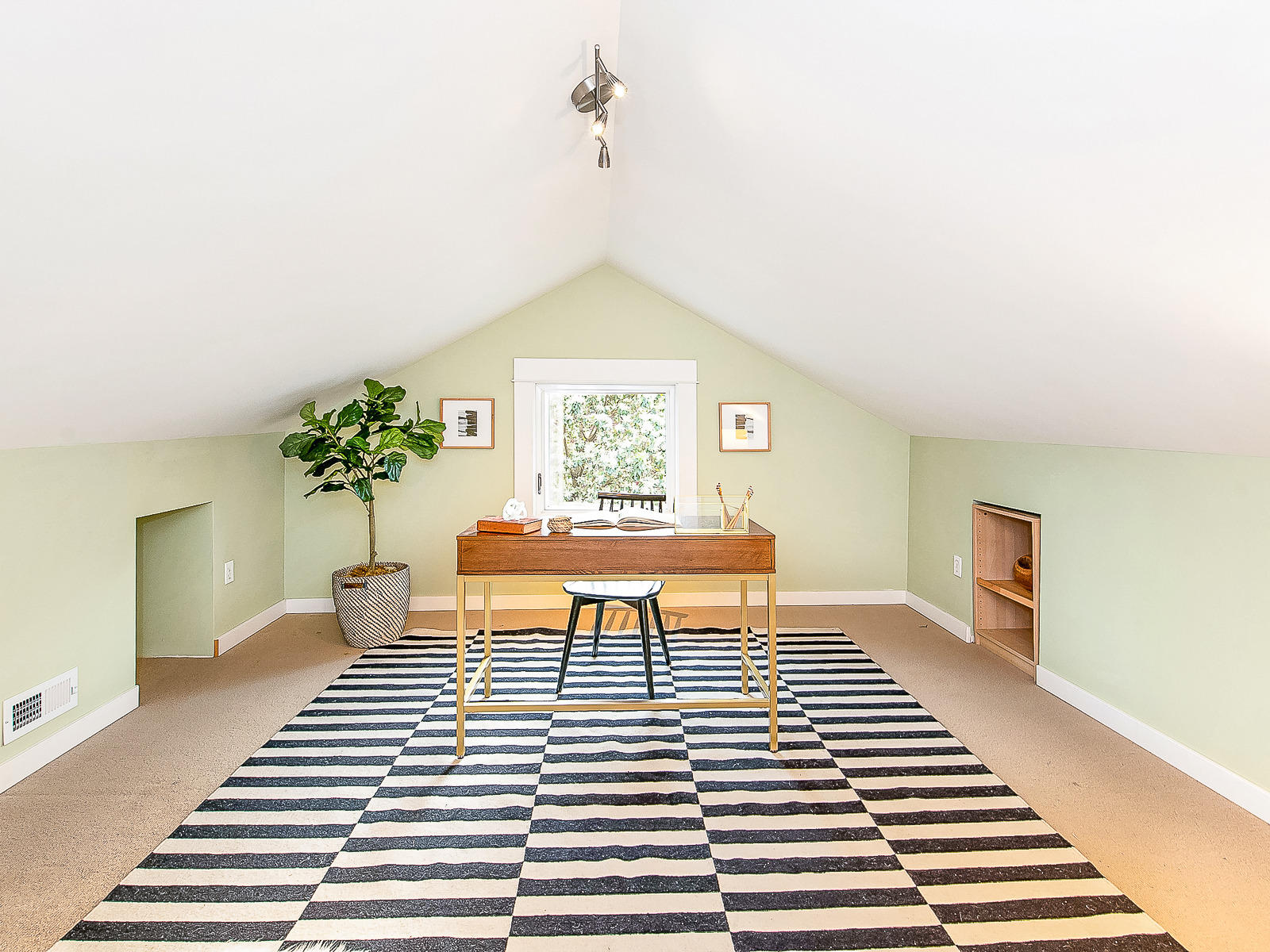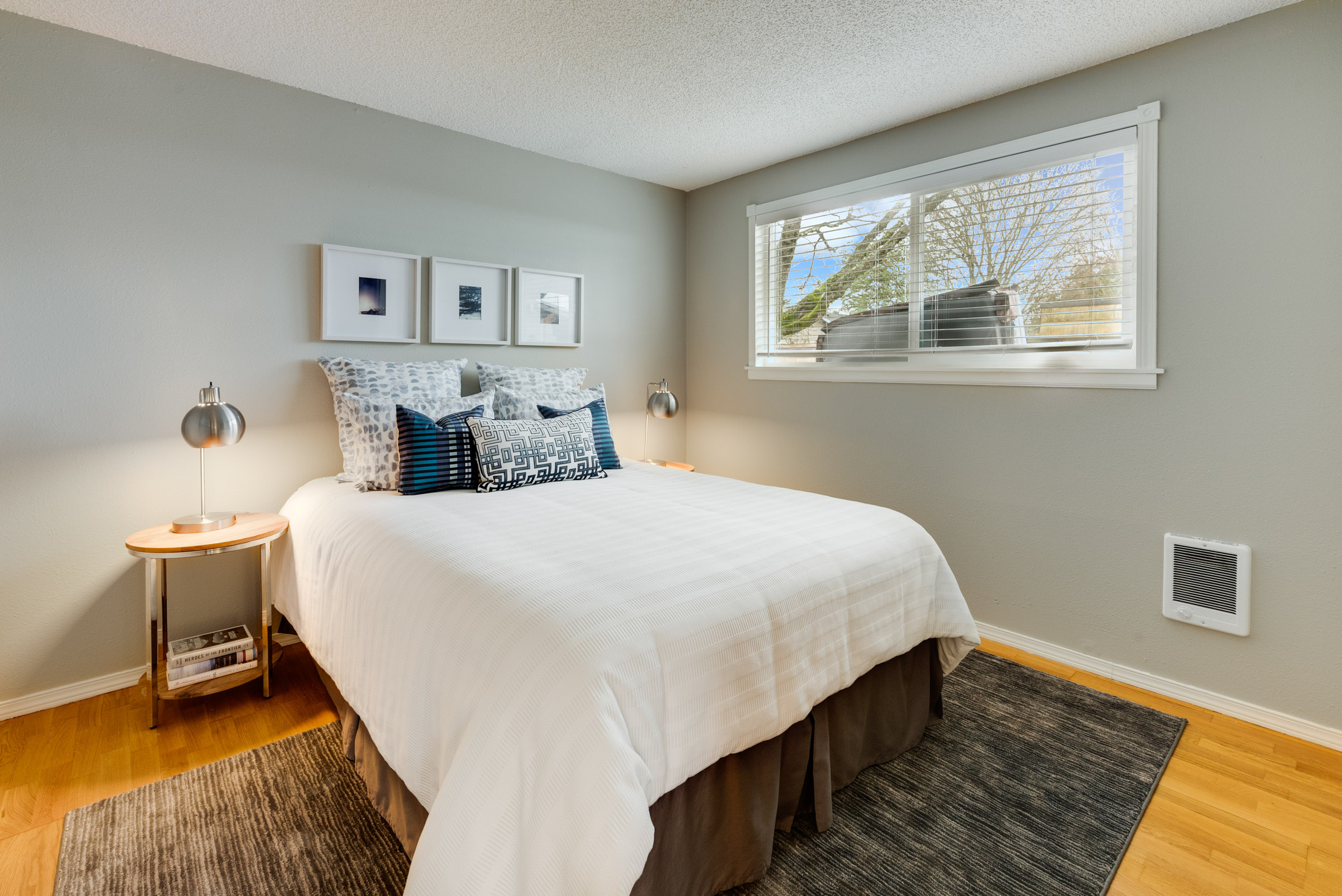 The upper level boasts three bedrooms, a large full bathroom, original built-ins, and a bonus nook. On clear days, there is even a peekaboo view of Mt. Hood from the front room. Finally, if all of that isn’t enough, the lower level has been fully converted, with two bedrooms and ample storage spaces, as well as a custom-built bar in a bonus living room for endless entertainment possibilities.