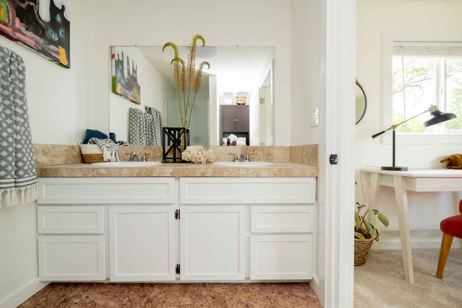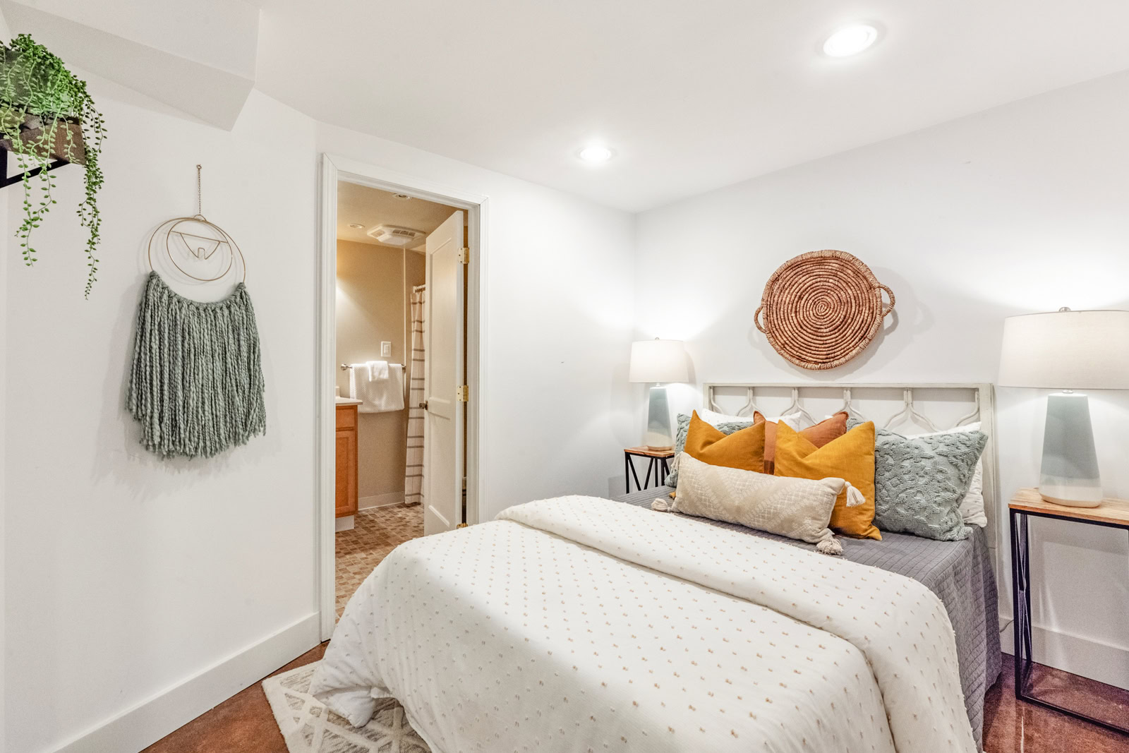 Downstairs, there is a large family room with wet bar, a fourth bedroom, and full bath. Utilize this space to host family and friends, or explore converting it into an ADU. It can be accessed from inside the home, the outside entrance, or directly from the convenient garage bays that are separated and private.