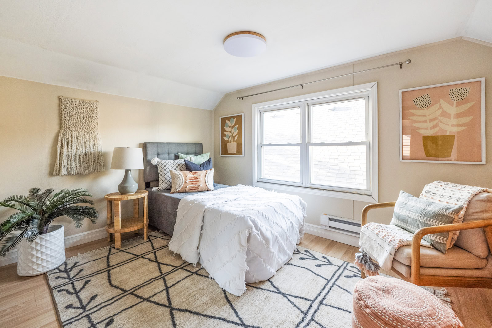 Light-filled and teeming with versatility, this mid-century Hazelwood home with attached sunroom is complete with 5 bedrooms, a full bath, and additional ensuite half-bath. Charming original details abound, enjoy picture windows, hardwood floors, cool-again wallpaper, fresh interior paint, and both updated and original lighting. Entertain friends in your open living and dining rooms that spill out to the sunroom. Whip up brunch in your galley kitchen with eat-in nook, or set up a craft studio or movie room in the large basement. There are great storage options throughout including the main hallway, basement, and attached garage. Step outside to your extra large lot with well-established trees and shrubs to grow food or enjoy a quiet retreat. With a biker’s paradise score of 93, get to groceries, cafes, fitness, shops, and around the city with ease!