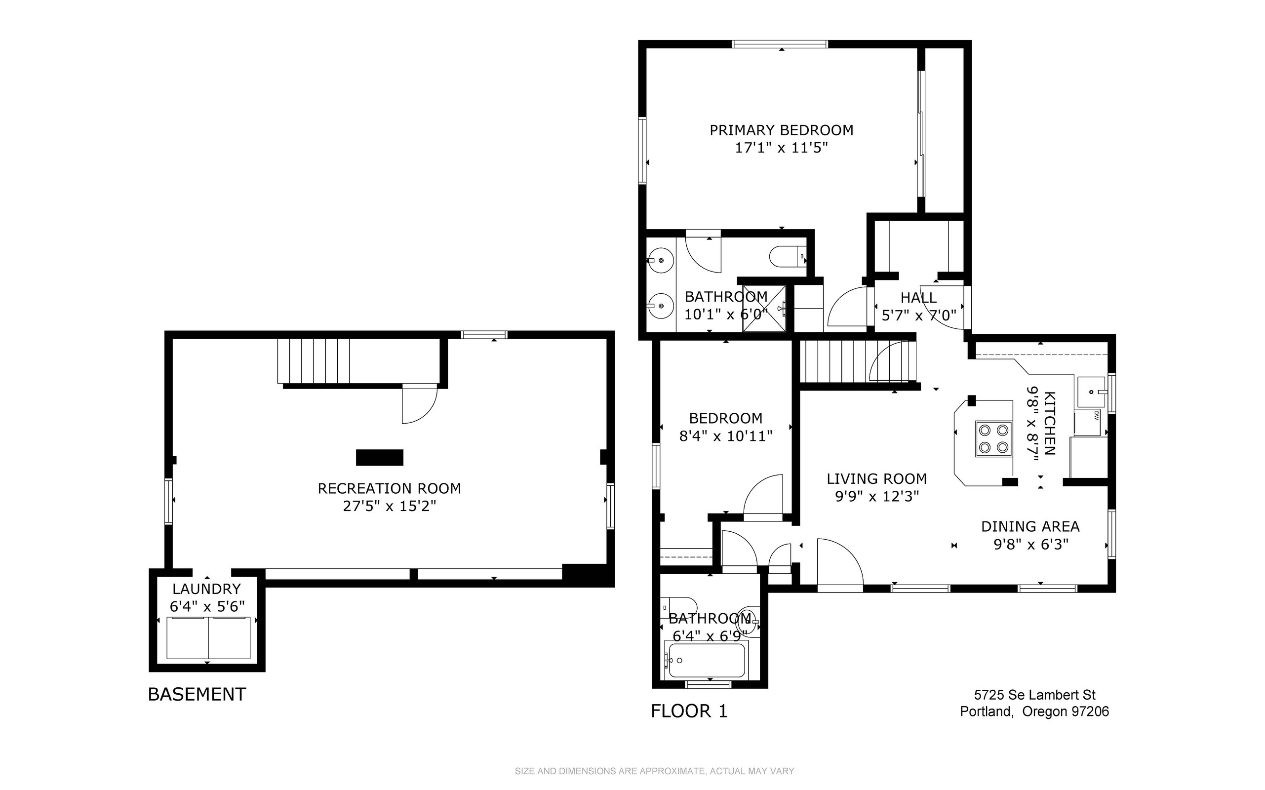 Step into this mid-century Parkrose Heights home complete with light-filled formal living room with gas fireplace, hardwood floors, and dining room that spills out to the back deck. Bake a tomato galette in your kitchen with newer stainless steel appliances. Enjoy 3 bedrooms, and 2.1 bathrooms plus a large bonus room with a second gas fireplace in your basement. Could this be your party palace, movie room, teen lair, or guest space? Set up a dream woodshop or create an attached studio space in your two-car garage. Garden to your heart’s content in your large backyard, or throw an epic barbeque. Just a few blocks to public transport and a bike score of 84, get to shops, parks, cafes, and around the city with ease.