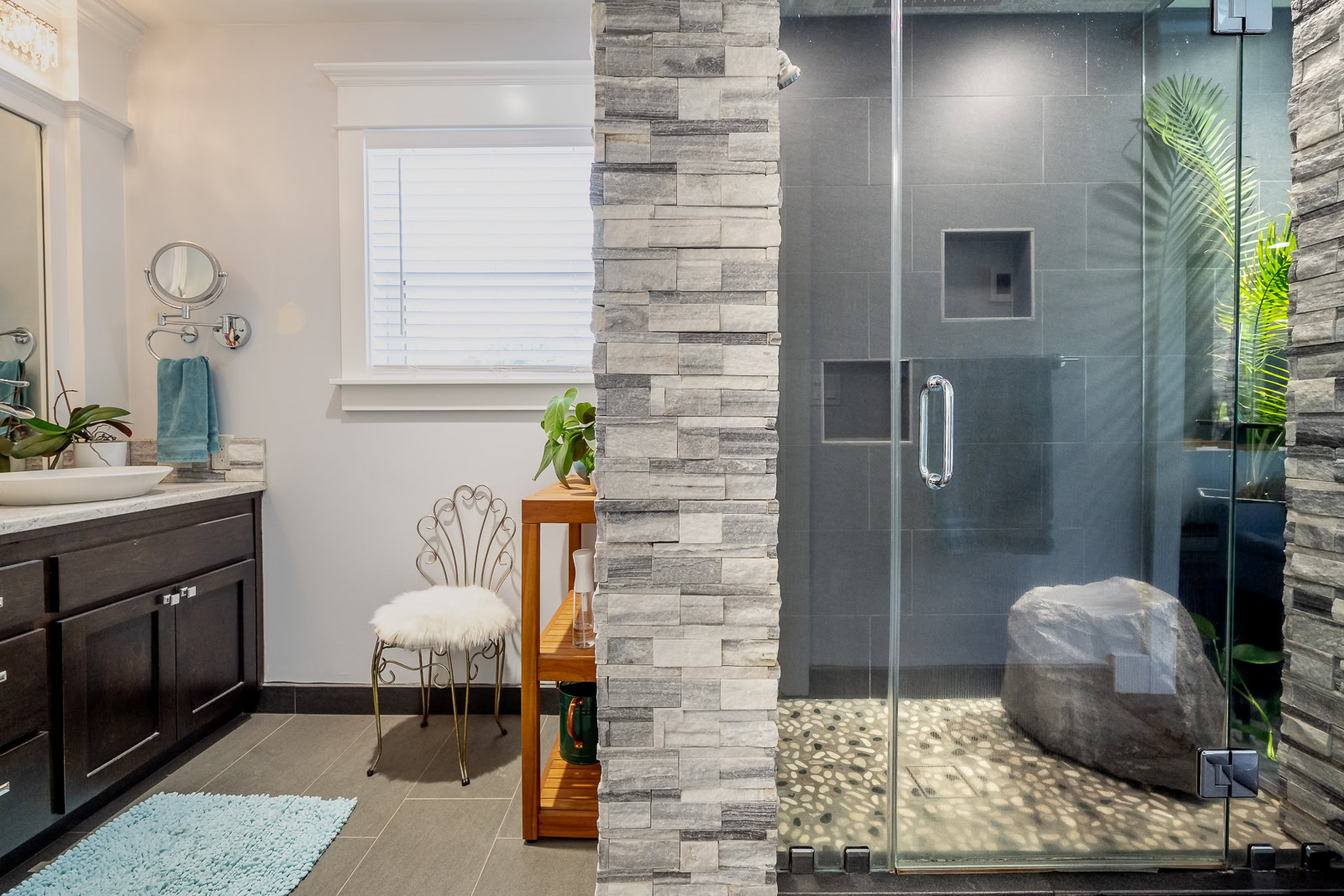 The main floor features a sunny living room, a spacious kitchen with brand new appliance package and ample counter space, and a main floor bedroom and bath. Upstairs you’ll find two bedrooms and a gorgeous custom bathroom with freestanding designer soaking tub, skylight, and walk-in shower. Downstairs, there is a large family room with modern stained concrete floors and a fourth bedroom or home office with its own ensuite bath.