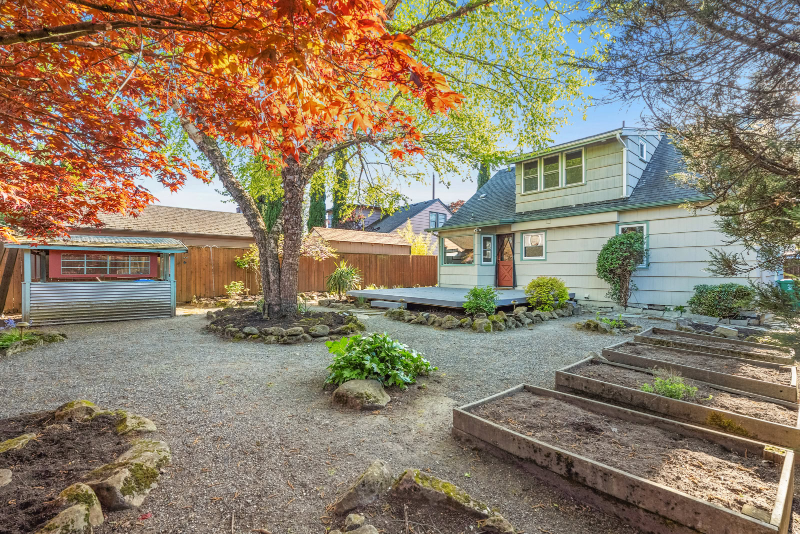 Everything you need in your new home is here! Step into this light-filled University Park gem with wood floors, wood burning fireplace, stylish touches throughout, high-end lighting and hardware, and remodeled kitchen and bathroom. This ray of sunshine is complete with two bedrooms and a full bath with clawfoot tub. Abundant potential in the clean, open basement with extra ceiling height and a side entrance. In the heat of the summer or the cool of the winter, enjoy your covered back porch. Grow food in your raised beds, tinker in your potting shed, or entertain friends and family on the deck under the lights. Work or play in the detached finished studio which boasts hickory wood floors, custom Moroccan lighting, a loft space, and more. With a 78 Walk Score and a Biker’s Paradise Score of 99, get to grocery stores, cafes, Forest Park, and around the city with ease!