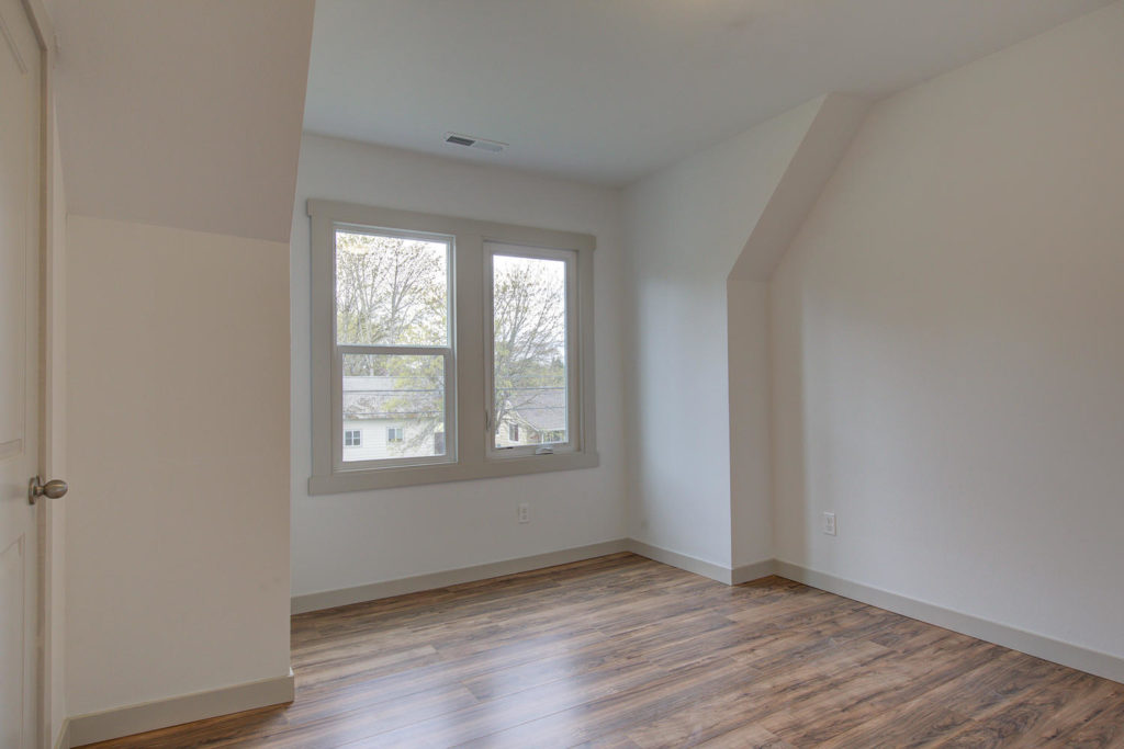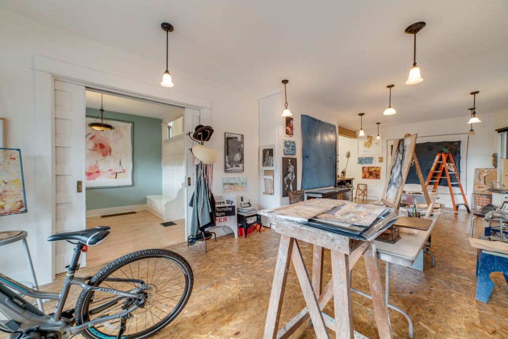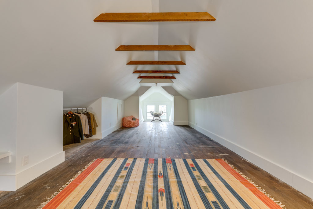 Just off the kitchen, you’ll also find an office with high ceilings and a deep storage closet. And on the other side of the living room is a lovely bright den, easily imagined as a media room, home school room, office or flex space.