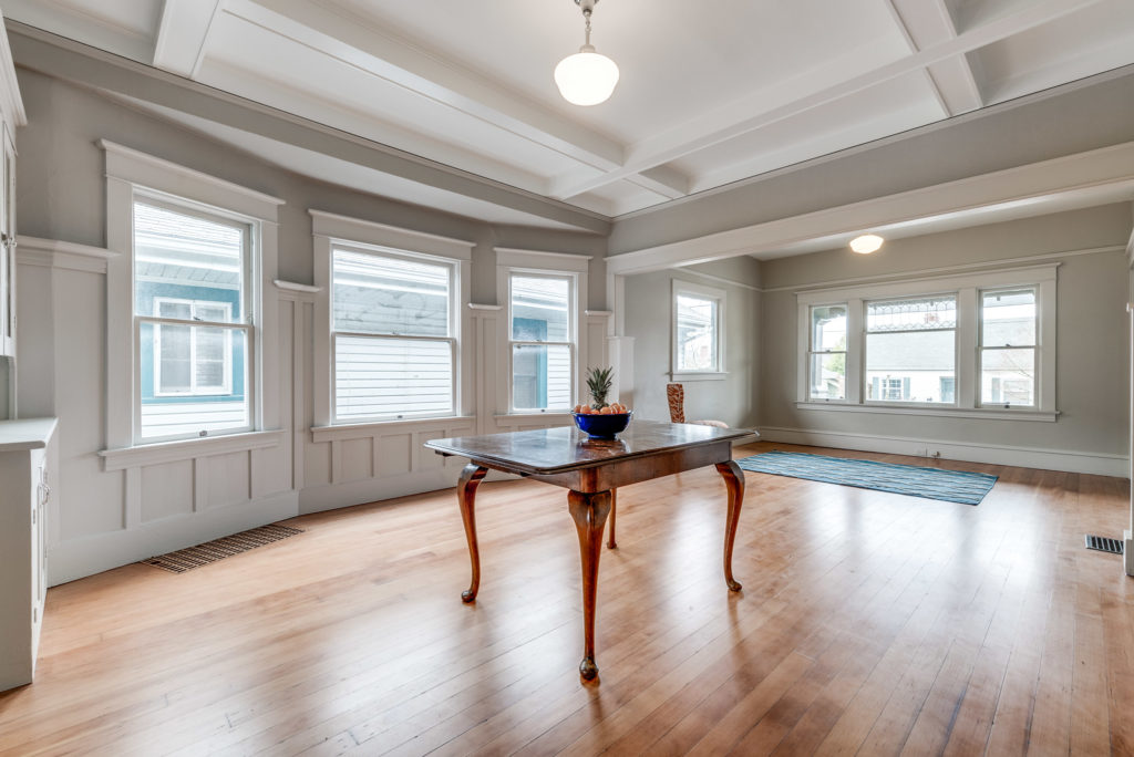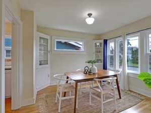 The formal dining area is lovely with classic built-ins and ample room for hosting large dinner parties. Around the corner, you’ll find a darling dining nook with a barrel-vault ceiling, a big picture window and leaded glass built-ins!
