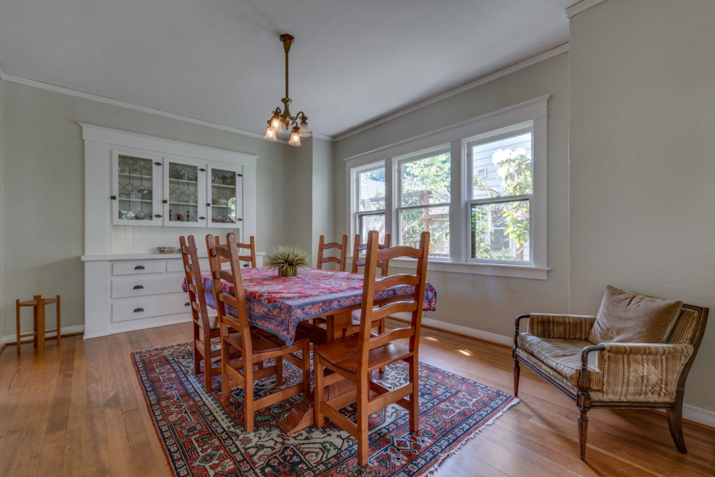 Classic Richmond Bungalow. Gorgeous chef’s kitchen with stone countertops, built-in breakfast nook & tons of storage. Generous bedrooms & sunny open landing upstairs with 3rd bedroom on the main. Vintage details throughout; abundant built-ins, millwork, wood floors & fireplace. Unfinished basement has great potential. Updated systems include; windows, electrical, plumbing, furnace, water heater, seismic retrofit. Fenced garden full of natives & entertainment spaces. Blocks from People’s Food Co-op, New Seasons, coffee shops and dining.