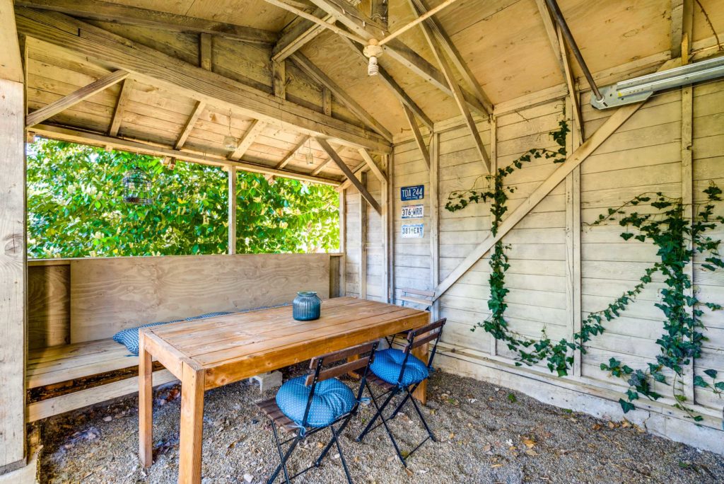 Back patio has flagstone tile and a firepit ready for outdoor entertaining. The driveway offers lots of off-street parking and leads you towards the back of the property to the oversized garage.