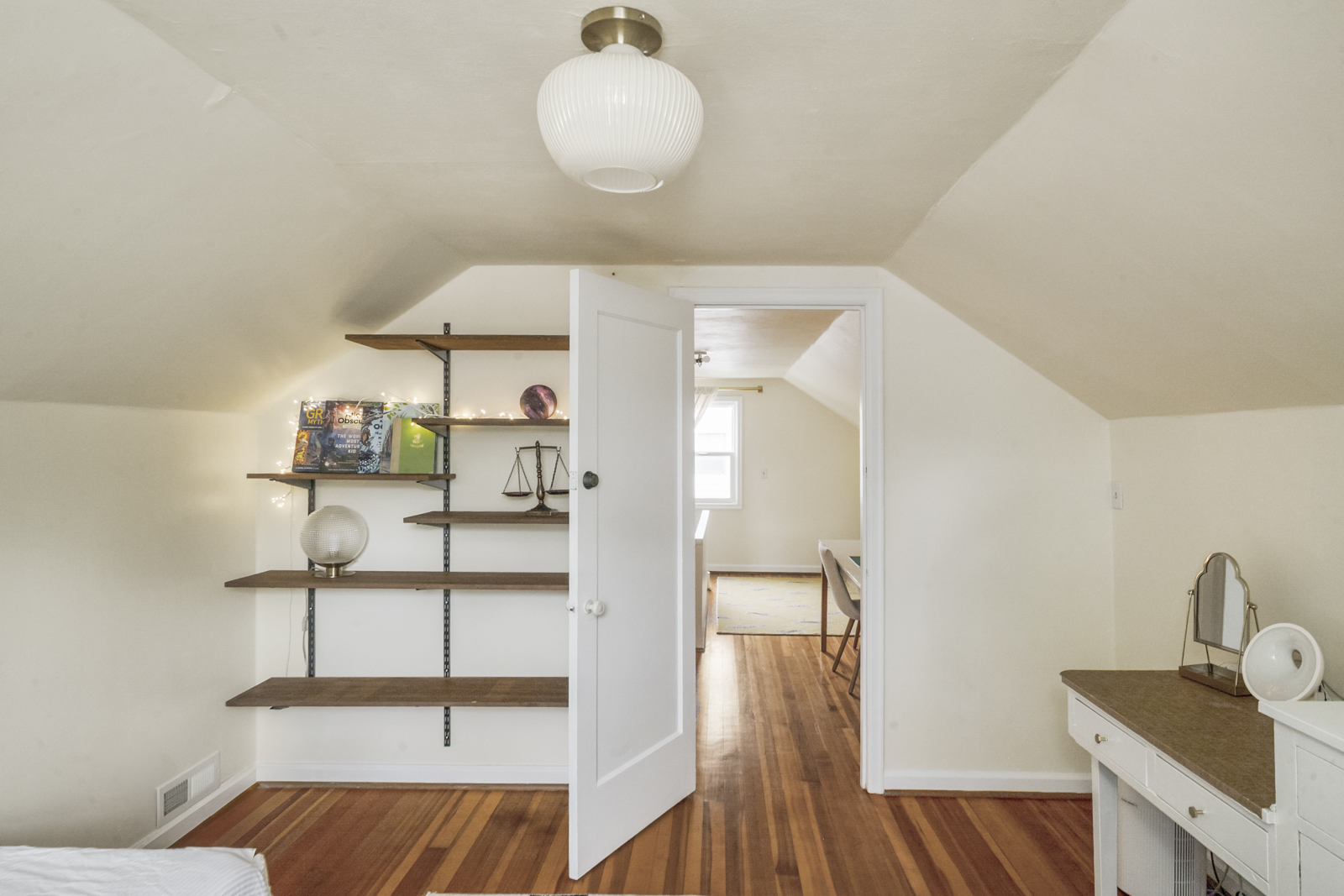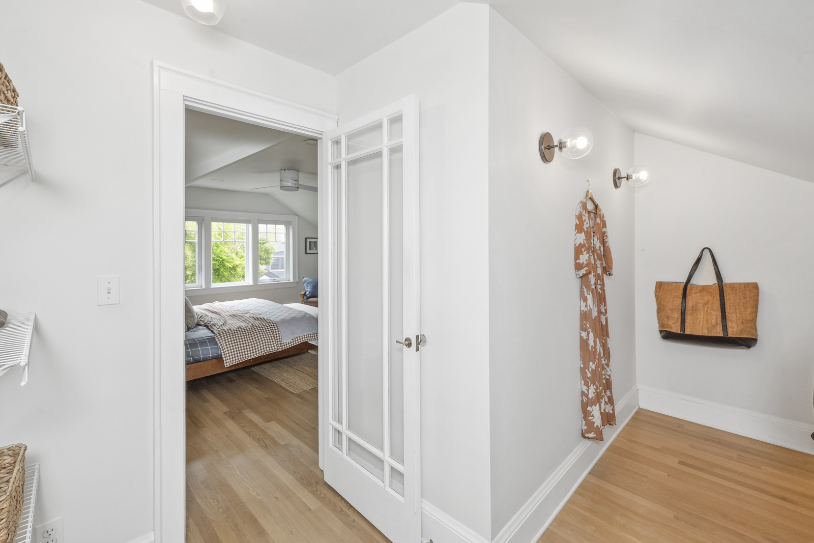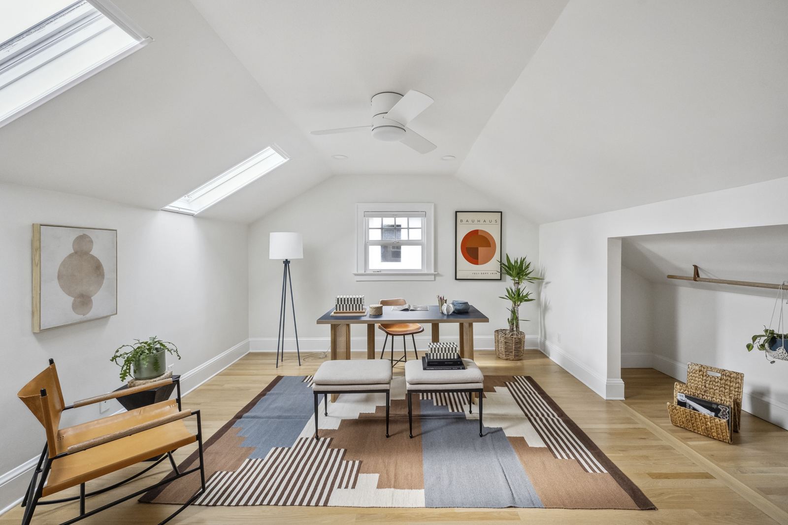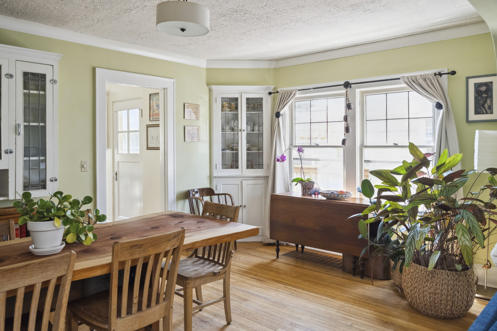 The house itself is full of warmth and light, with high ceilings, original wood floors, and a spacious layout that features a formal living room, a comfortable kitchen with new marmoleum flooring that flows into the dining room, and a main floor bedroom and bathroom. Upstairs, find a second full bathroom, plus two more bedrooms, including a generous primary with a connected sitting room/office area (or make this space an epic walk-in closet!).