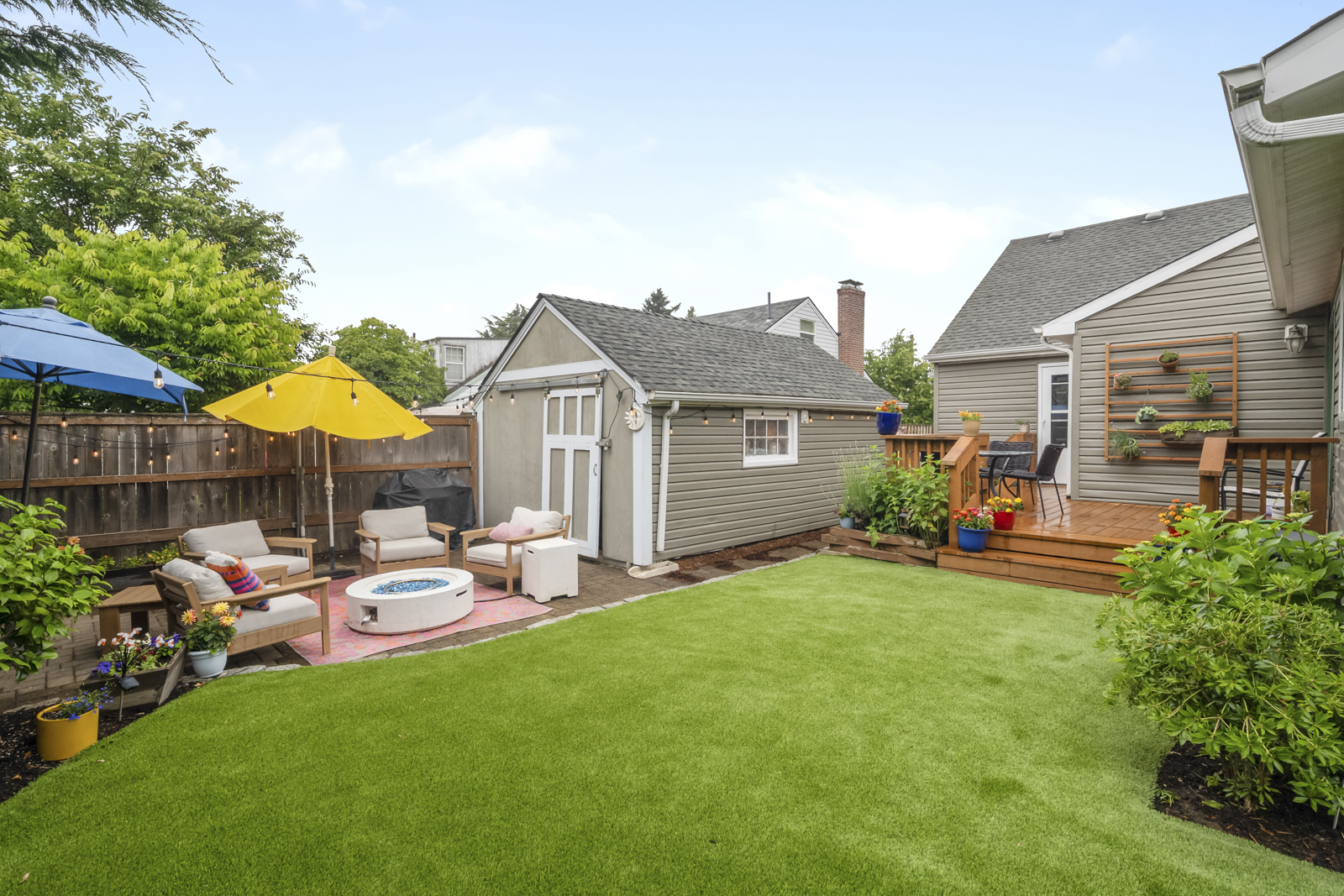 The long driveway allows for plenty of off-street parking, and the shed offers great storage for bikes and garden tools. Located only a block from the Peninsula Park rose gardens, this home’s central location is one of the best in the city.