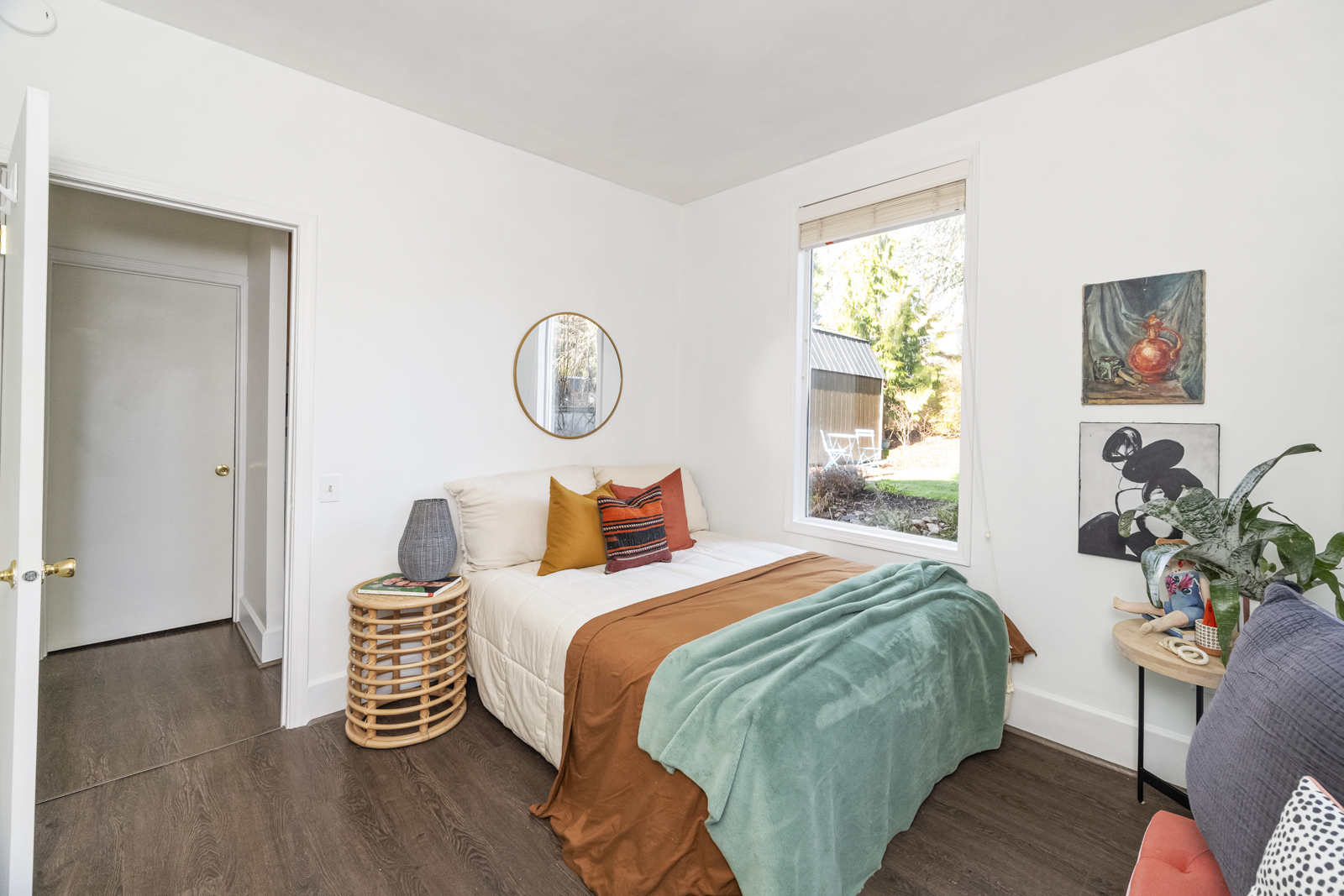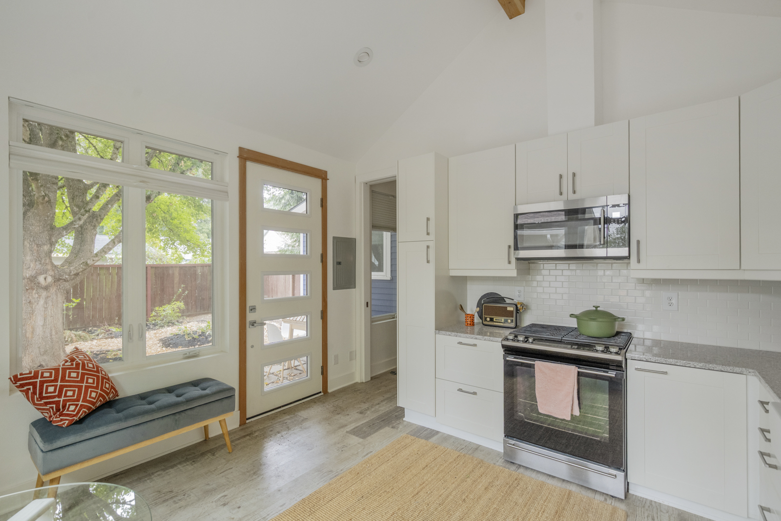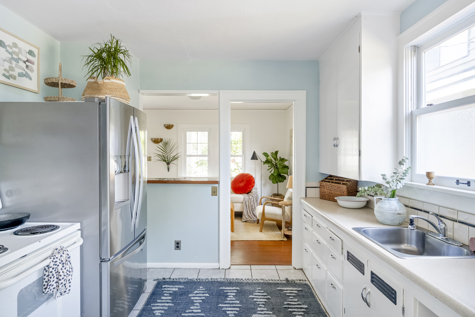 Step inside this darling mid-century gem and be greeted with light-filled rooms and hardwood floors. This 2-bedroom, 1-bathroom home is complete with sound updates throughout, including new insulation, newer water heater, new slab in the garage with new paint, new parking pad, landscaping updates, and paint updates throughout. Bake a berry pie in your kitchen with new tile backsplash, a new sink and countertop, and new cooktop. Garden to your heart’s content in your large front and back yard, ready for flowers, food, or fun landscaping. Create an art studio, playroom, or home gym in your partially converted garage. Save money on energy costs with installed solar with 11.4 kWh storage capacity. With a 70 bike score and public transport nearby, get to shops, grocery stores, cafes, parks, and around the city with ease.