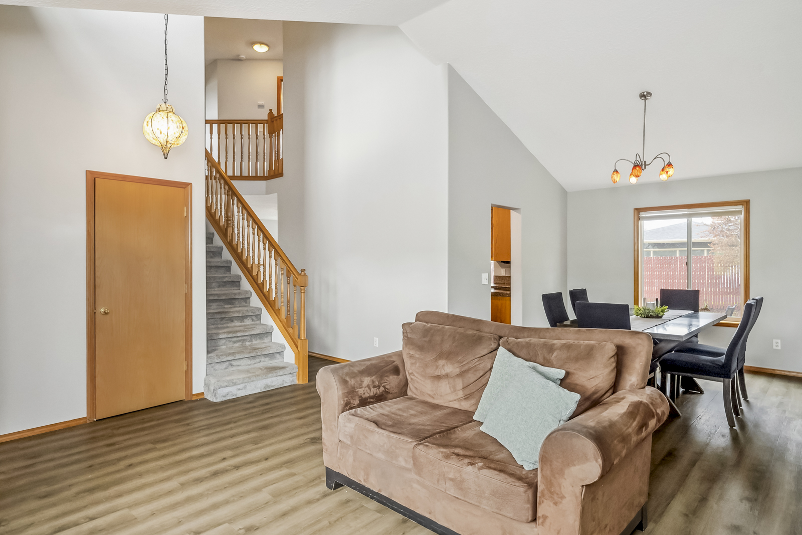 This upgraded townhome offers elegant luxury at an affordable price! Step through the front door and immediately notice the care and attention to detail, with updated engineered wood flooring, smooth-finished walls, and a beautifully tiled fireplace adjacent to your private backyard access! The yard is a rarity for this property type, and it is meticulously landscaped, wonderfully inviting, and includes a patio for al fresco dining during the summer months.