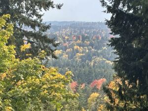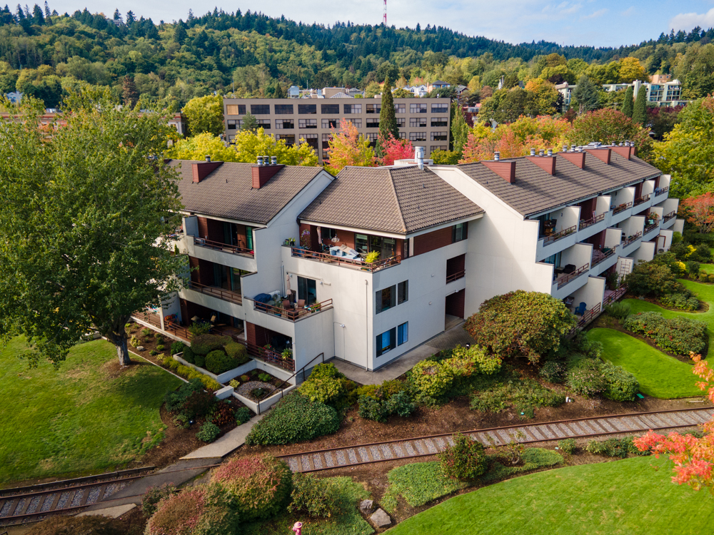 Abundant natural light and dramatic views of local tree tops & the Cascades.