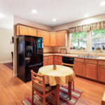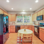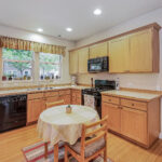 The dining room is open to both the living room and kitchen and has period built-ins. A large, floor-to-ceiling window opens to the backyard and patio, creating a year-round experience of “outdoor dining.” A convenient breakfast bar separates the eating area and the kitchen, providing space for informal meals or laying a spread when it’s your turn to host. This is a wonderful space for entertaining and also perfect for intimate dinners.