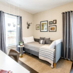 It lives like a sprawling ranch home — boasting a huge open plan ‘great room’ with kitchen, dining and living room all rolled into one.