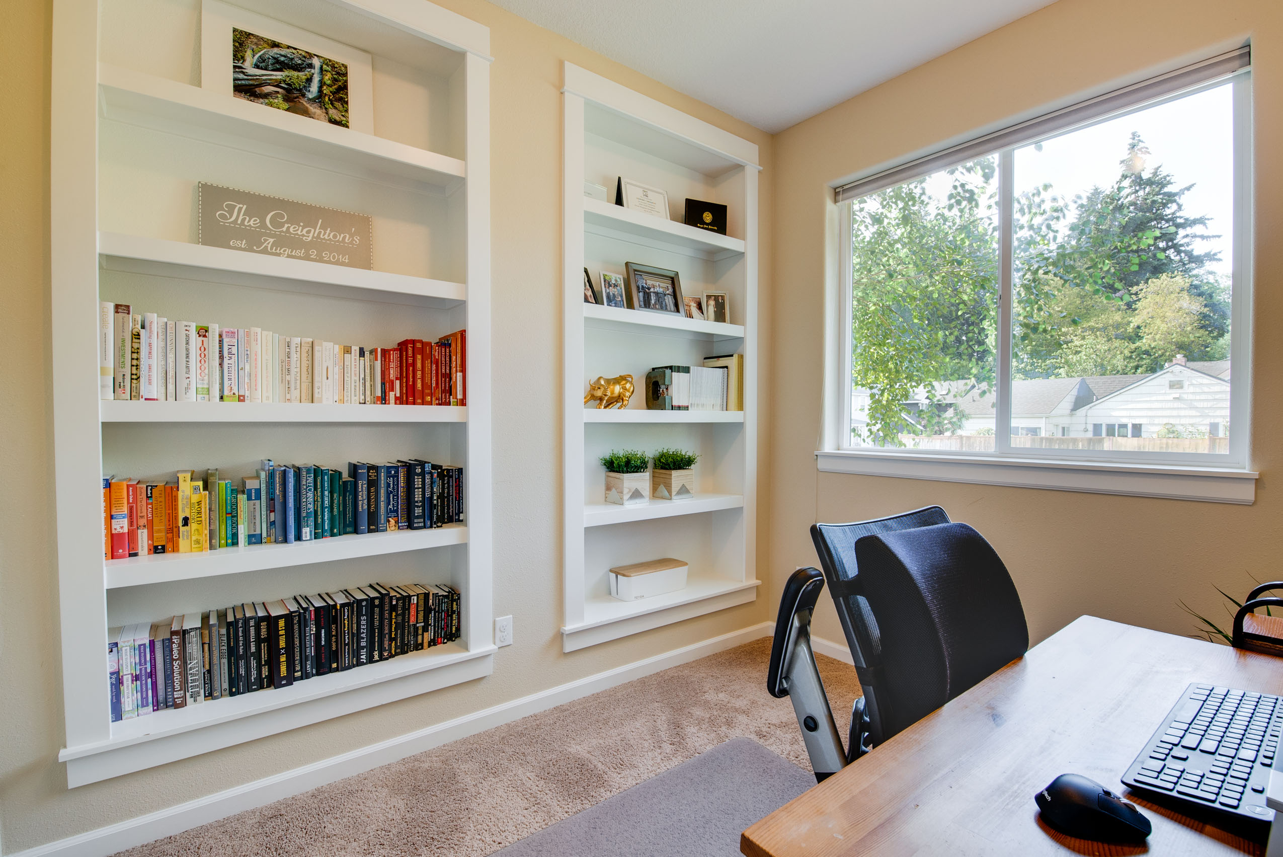 This adorable Milwaukie bungalow features four bedrooms and two updated bathrooms. French doors off the living room adjoin a room with beautiful natural light. This is a great space for a bedroom or family room.