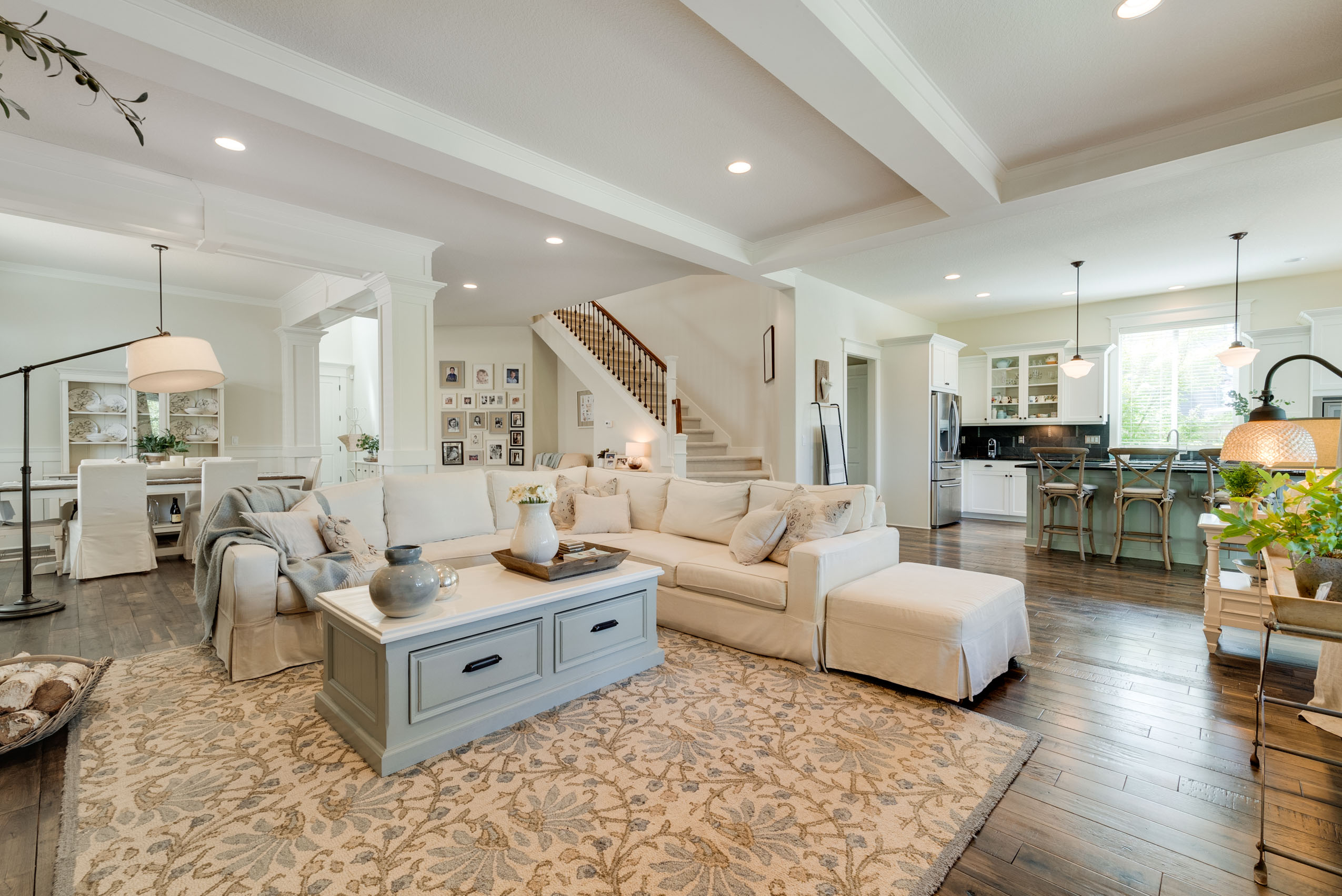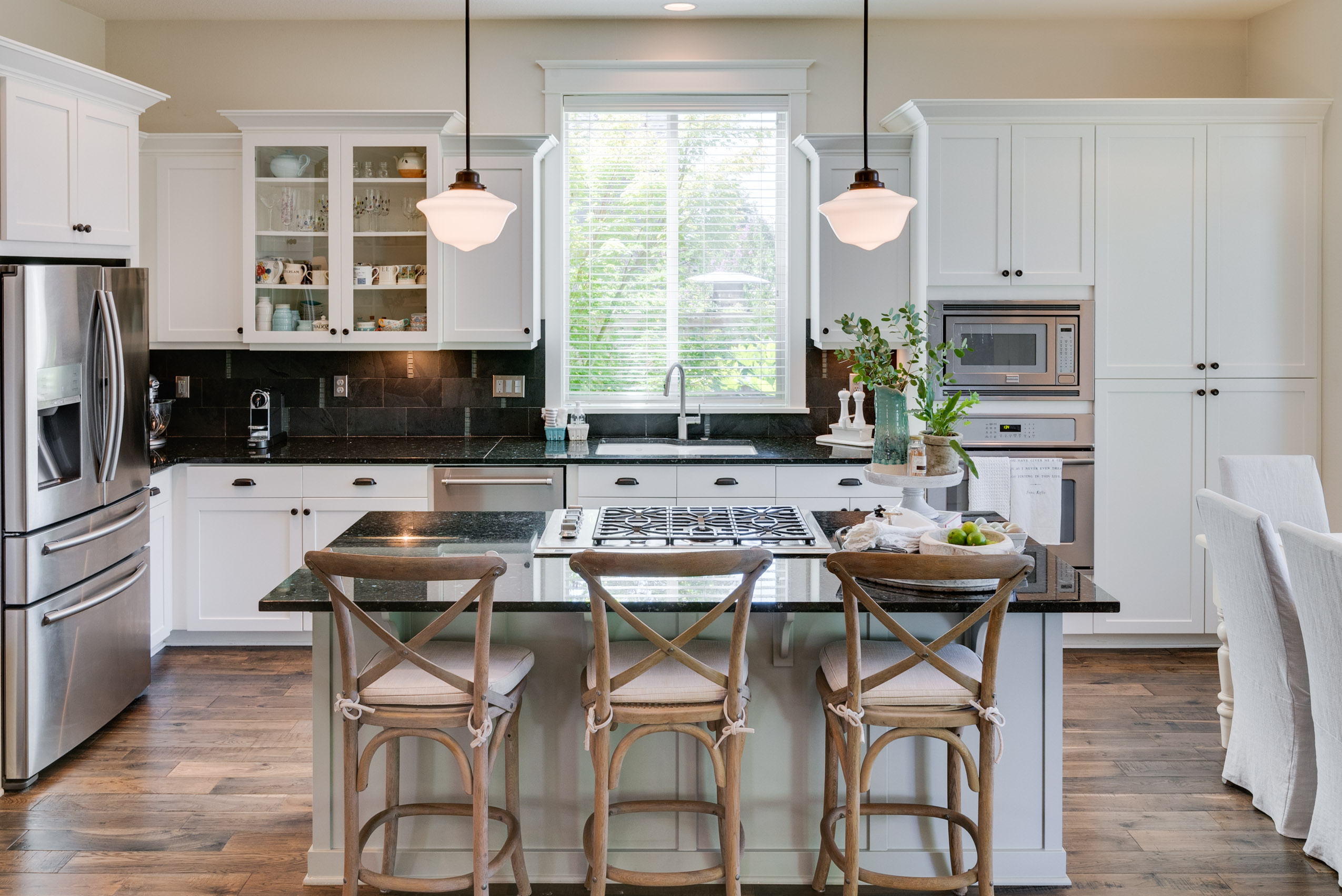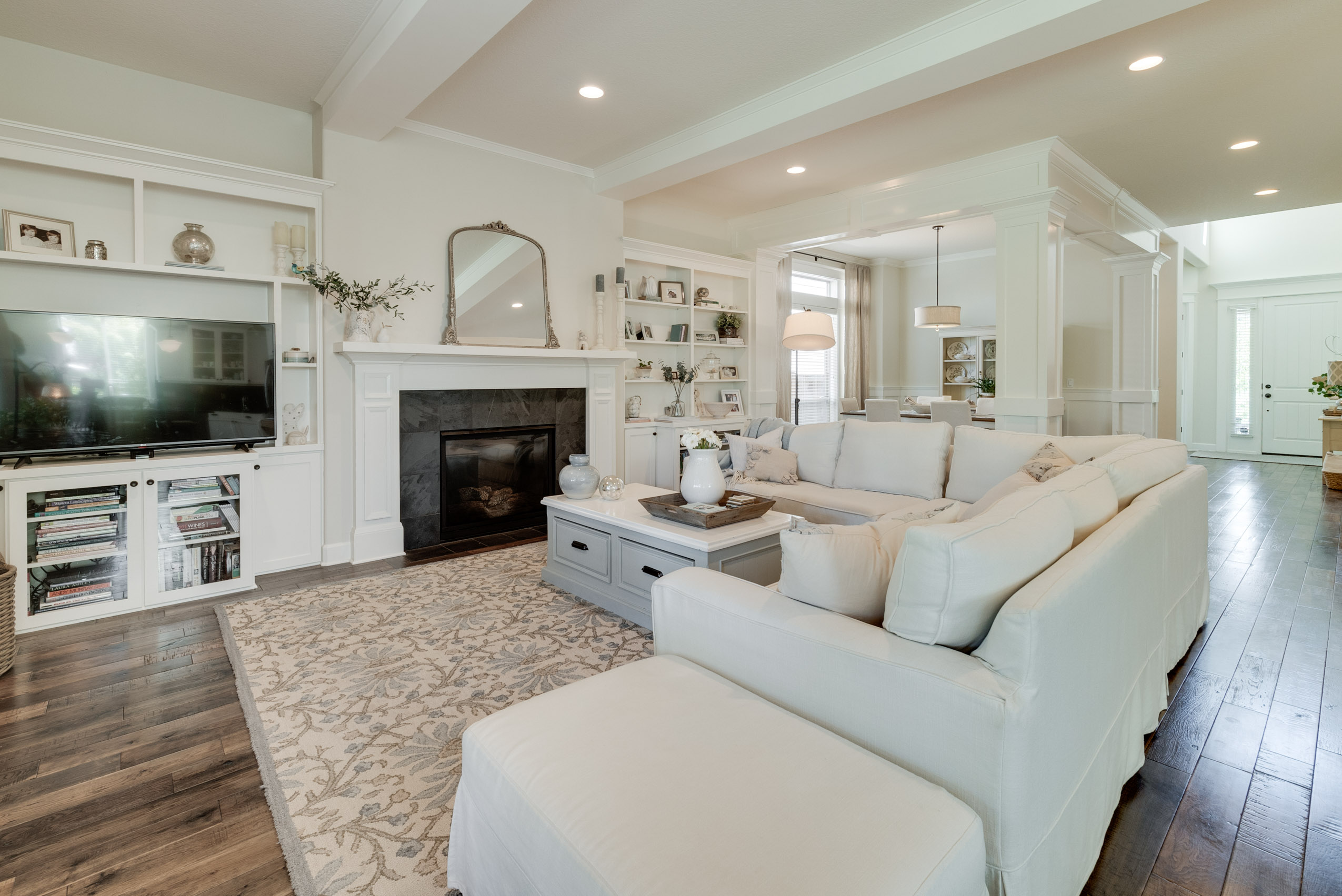 The kitchen features fresh white cabinetry, stainless appliances, a large island, breakfast nook with built in bench seat & ample storage. The entire main floor is open and spacious – it lives so large!
