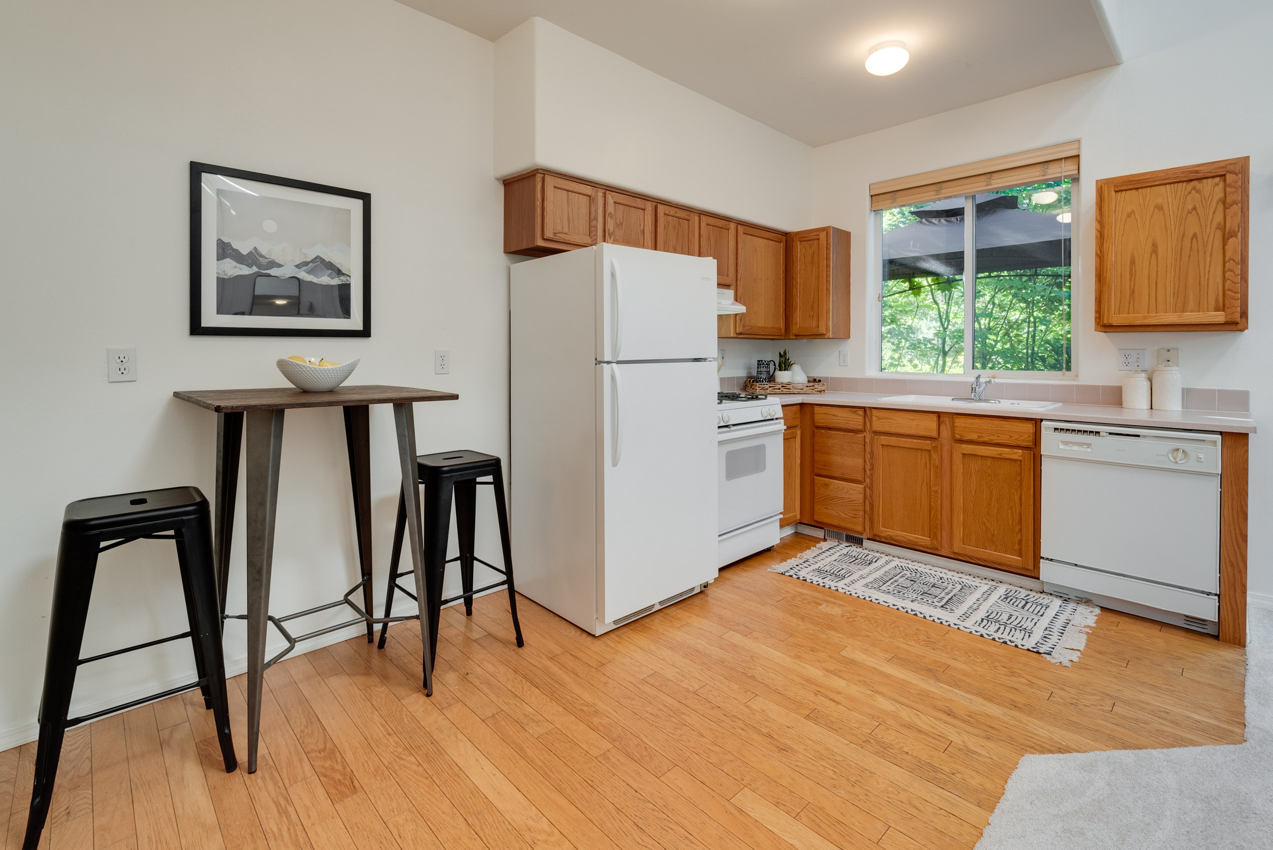This gorgeous Metzger home has an 0pen floor plan with engineered hardwoods throughout the main floor. The kitchen features a granite island with breakfast bar, stainless appliances, gas range and a pantry. A separate dining area leading to the patio is just beyond the kitchen.