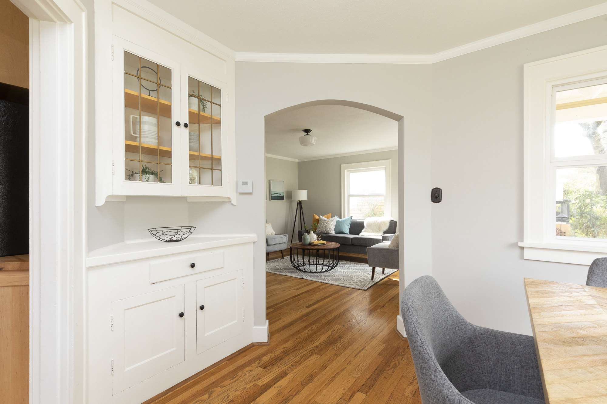 Mid Century charm in the Overlook Triangle! Perched up off the street, this stunning property has curb appeal in spades. Step through the front door and notice original features like hardwood floors, a fun mail slot, a vintage speakeasy door hatch, and beautiful corner windows for capitalizing on sunlight all year long.