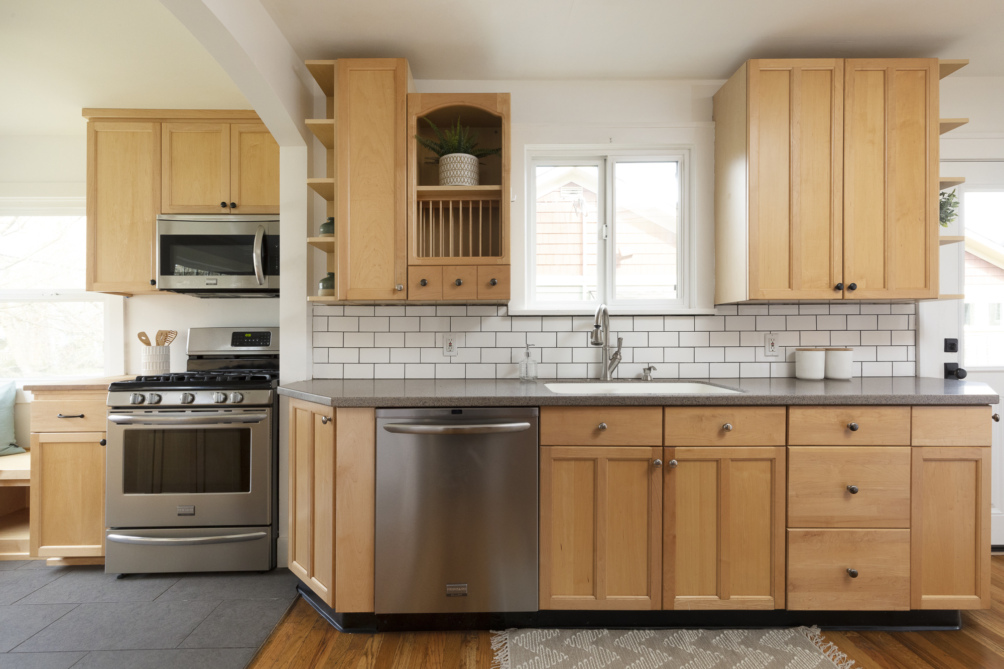 Enjoy cooking in the charming kitchen with vintage features that have been paired with modern appliances and a brand new sink and faucet. Two spacious bedrooms offer plenty of closet space and overlook the big backyard. Downstairs, find a clean full basement with an extra bonus room: it’s a quiet space for a home office, or a great place to hang with friends and jam.