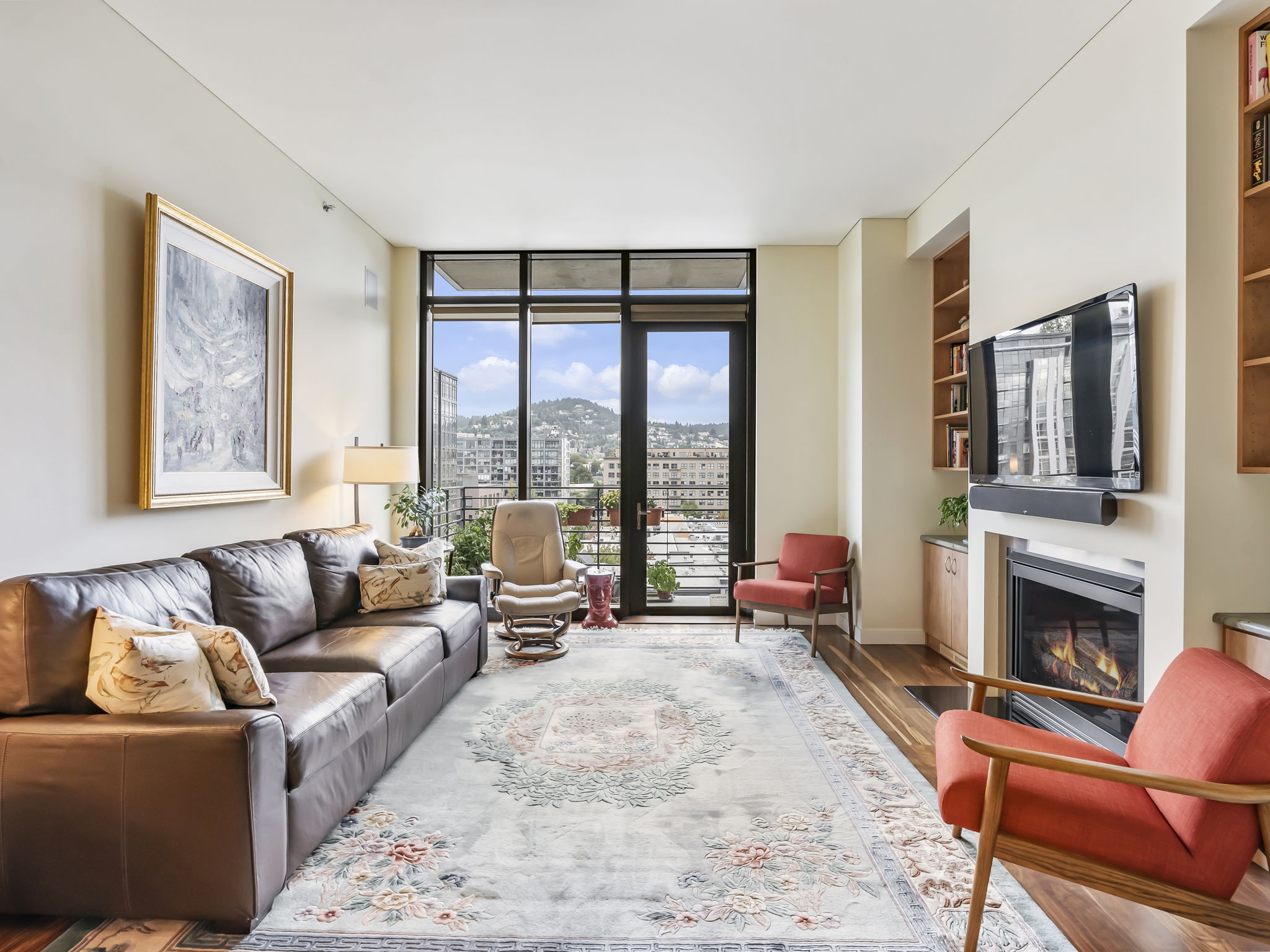This is Pearl living at its finest: enjoy the convenience of a secure modern building with Willamette River views that’s off the beaten path while still walkable to countless amenities. This oversized unit features an open-concept main entertaining space with hardwood floors, a cook’s kitchen with a large island, and a private covered balcony to take in the water views. Tucked into its own wing, find two comfortable bedrooms and two beautiful baths, including a primary ensuite with dual sinks, soaking tub, walk-in shower, and oversize closet.
