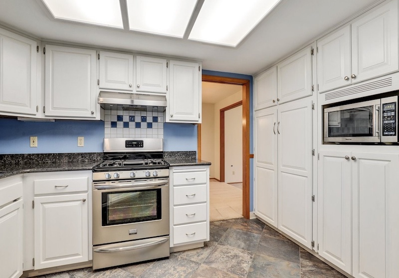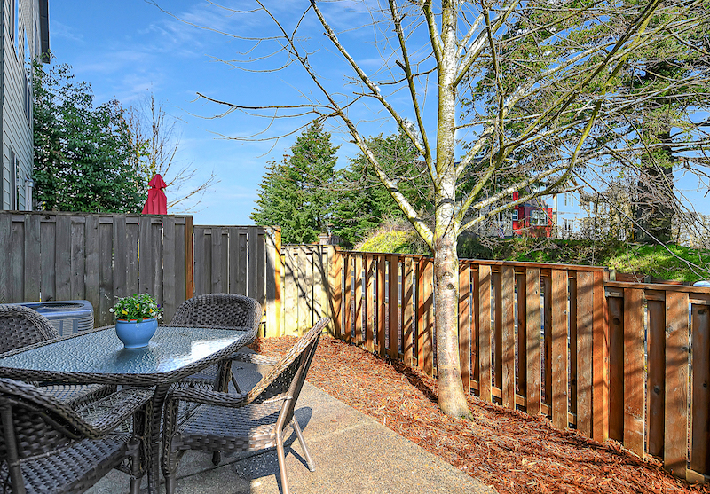Entering the foyer, you’re going to love the vaulted entry and abundance of natural light. An open staircase leads you up to the main level with a wonderful open floor plan, hardwood floors throughout and updated double-pane windows all around. The spacious living room has a cozy gas fireplace for those chilly months of the year. In the adjacent formal dining room, French doors deliver you onto an oversized, covered patio terrace overlooking the lush out of doors. This private exterior terrace is an extension of the home and has ample space for both outdoor dining and lounging: a truly wonderful space for entertaining! The formal dining room is conveniently located next to the warm and inviting remodeled kitchen touting stainless steel appliances, plenty of storage, granite countertops and a gas range.