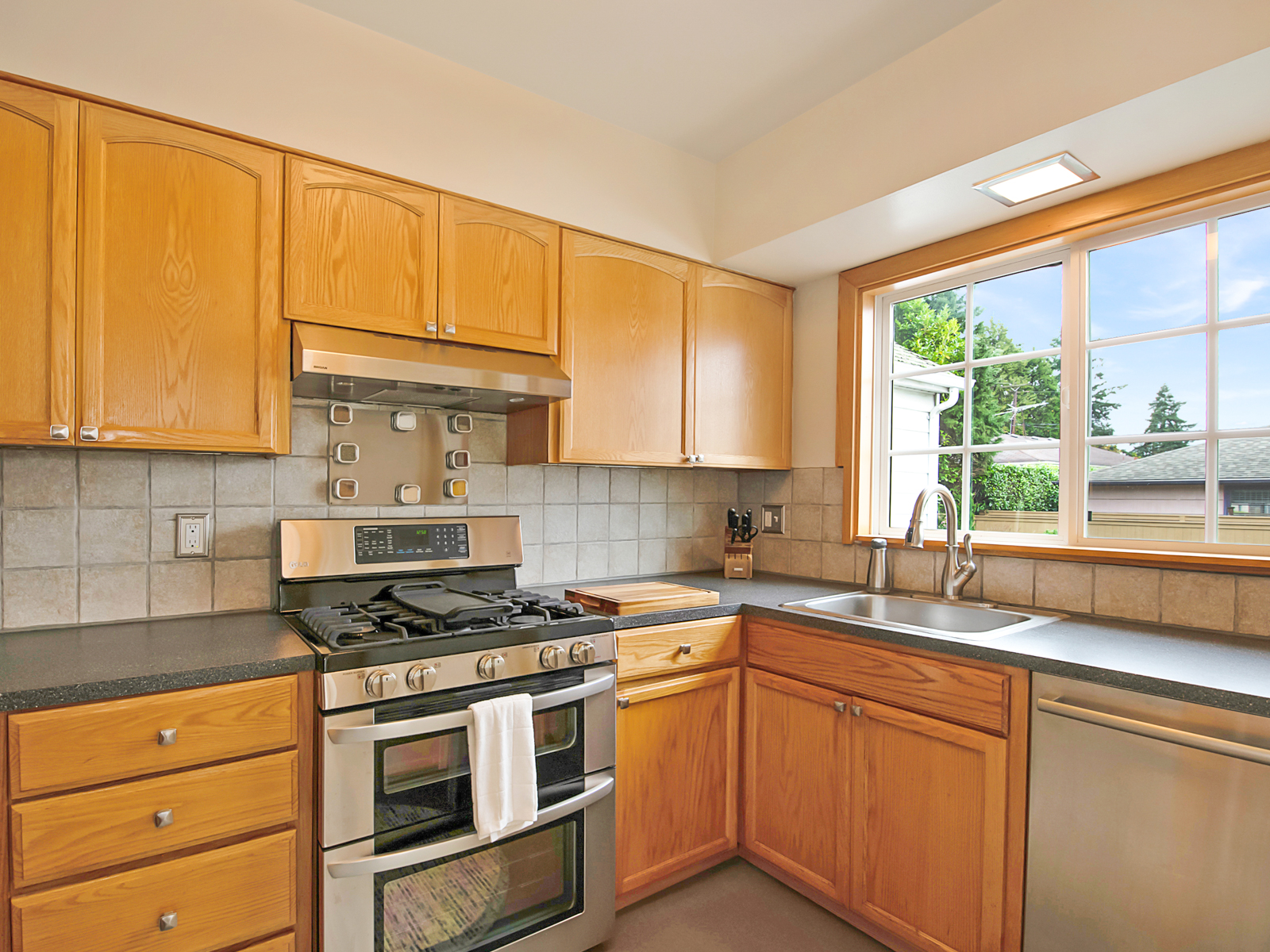 – Skylights fill the room with natural light