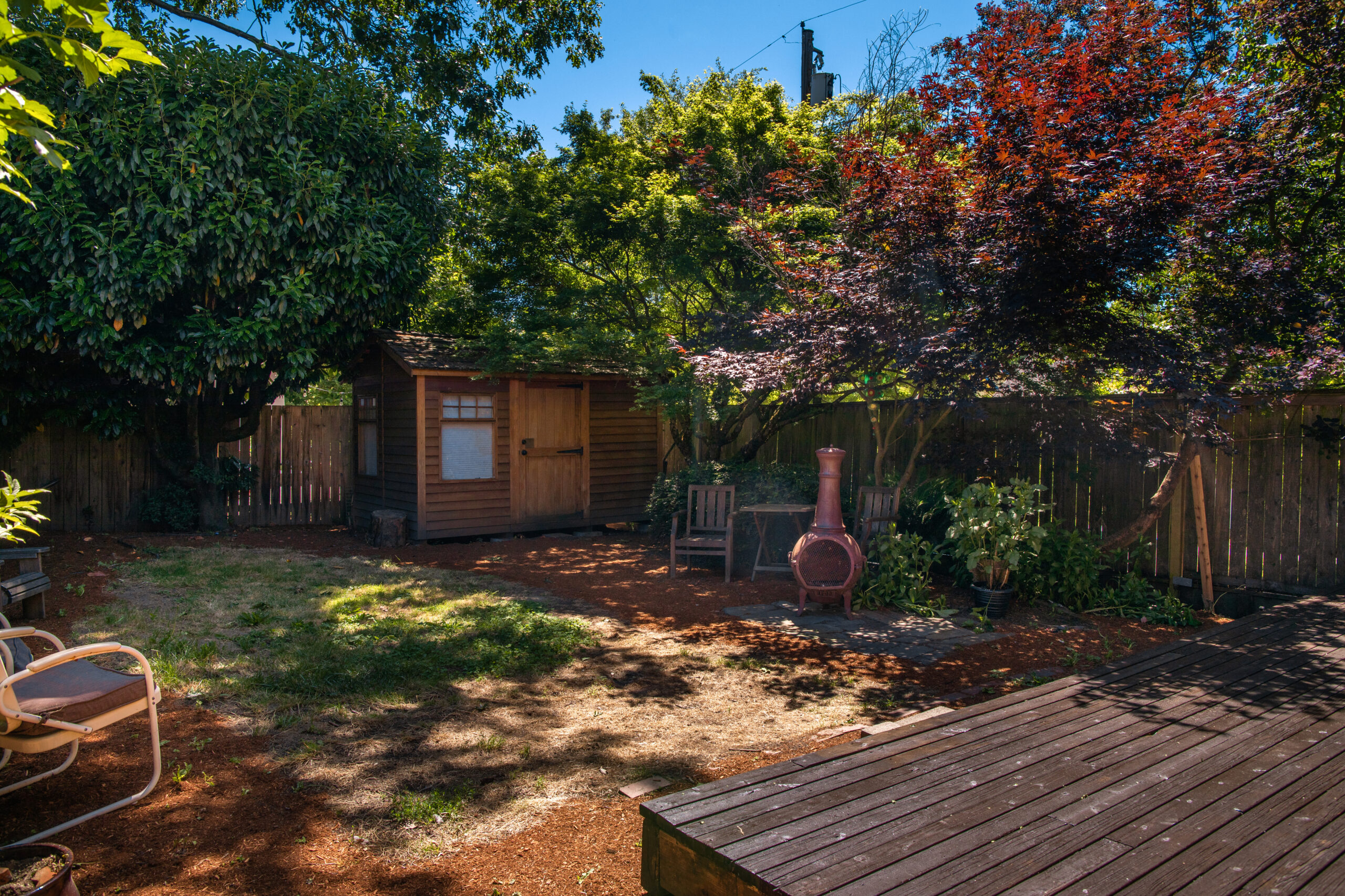 – New large back deck with central staircase leading to open yard