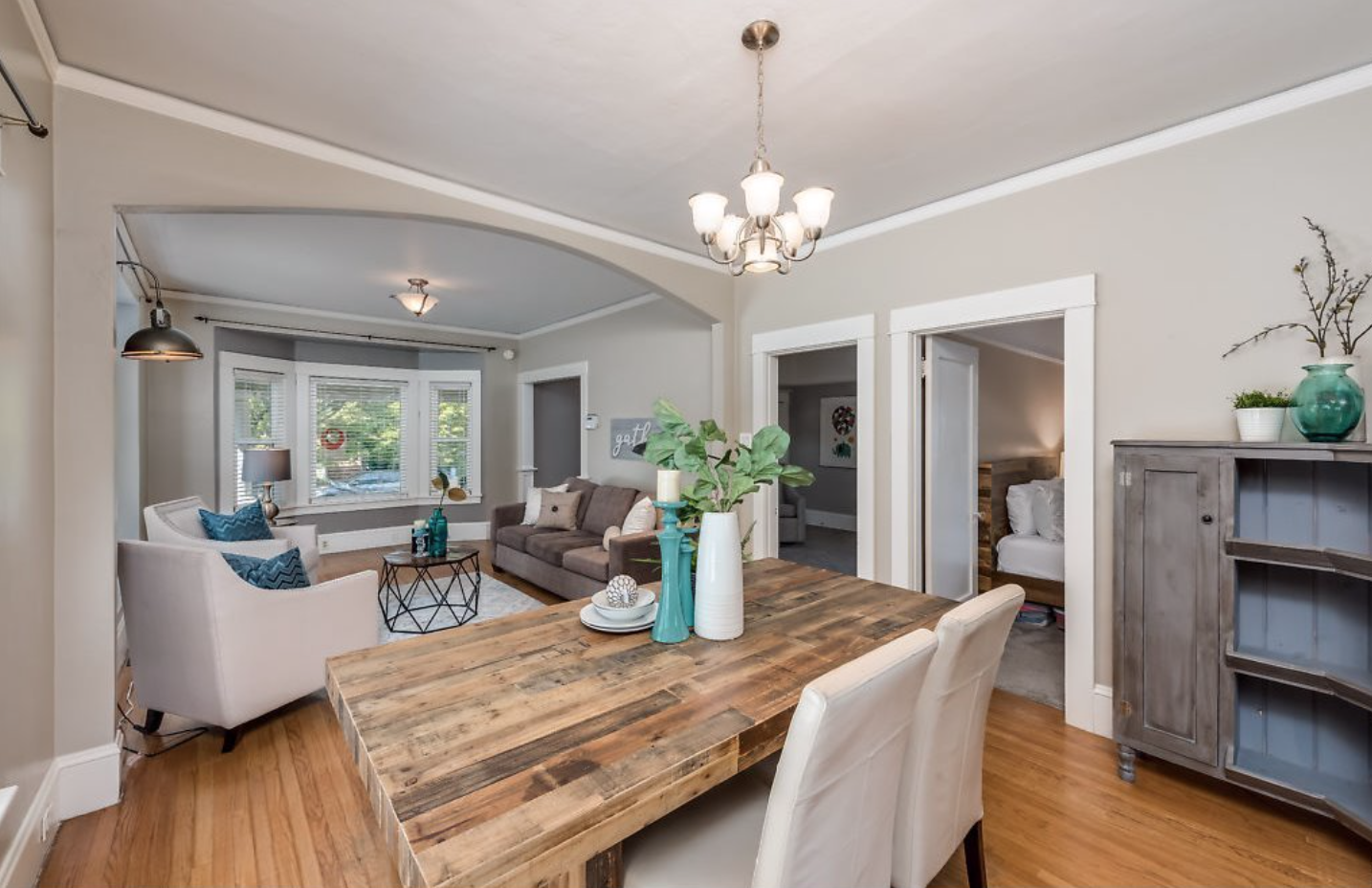 Ever stroll down 13th avenue in historic Sellwood and think “I’d sure love to live here”? Ever wander past the rows of perfect turn-of-the-century houses, painted out in bright colors and feel painfully covetous? Ever wish you too could own a piece of history, a period-perfect home that lovingly retains its vintage aesthetic? Perhaps you saw Season 8 Episode 5 4:00 of PORTLANDIA (the parallel parking scene) and caught a glimpse of this beauty itself? Well this is your chance to own one of your very own! Right in the heart of Sellwood, amidst the shops and cafes, on a quiet tree-lined street just a block from the library and another two to the park, sits a stylistic example of “Porch-Gable” bungalow design. Featured in Architectural Historian Thomas Hubka’s article “Sellwood’s Boom Era Houses”, The Oregonian, Dec 28 2015 as a prime example of the Porch-Gable or Gable-Front style of homes which boomed in Portland following the Lewis and Clark Exposition of 1905, she’s been lovingly restored and gently updated with both vintage aesthetics and modern needs in mind. Period details include: