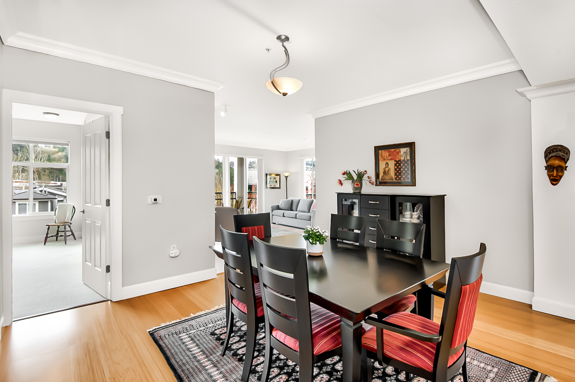 West facing large windows + balconies invite bright natural light