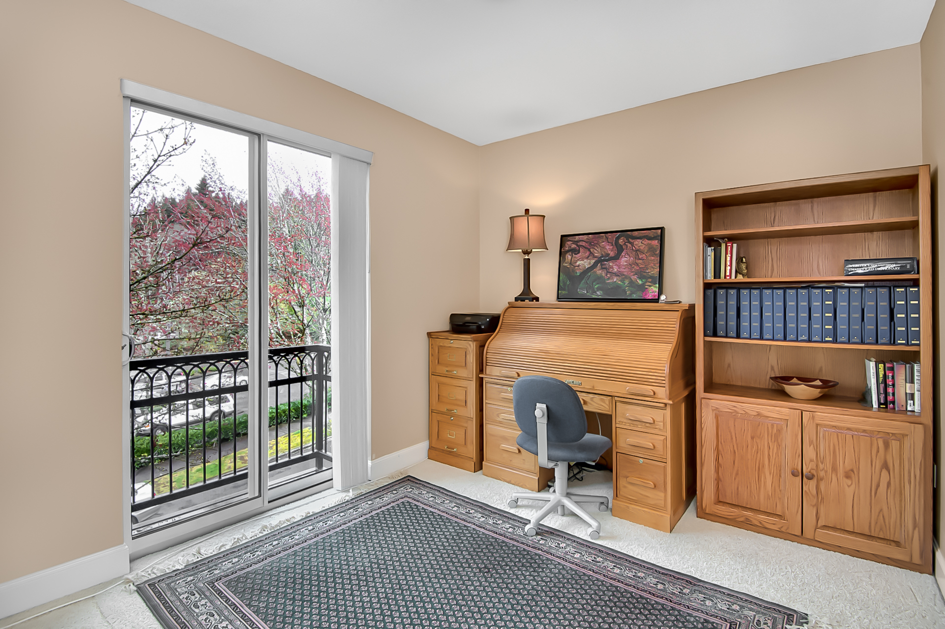 This one level Sellwood condo has it all: a spacious main living space with half bath for guests, a modern kitchen with quartz counters and stainless steel appliances, two generous bedrooms that are tucked away and quiet, a large bathroom with soaking tub, and in-unit laundry.
