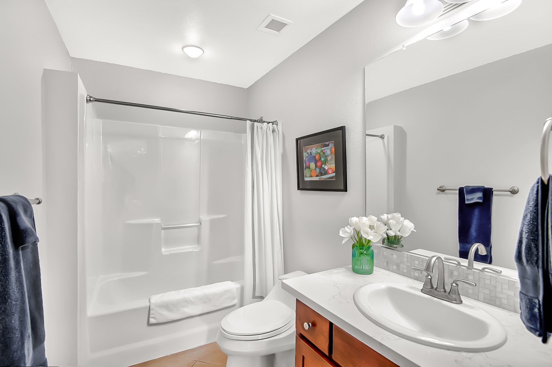 Large hall bathroom with tub just off the kitchen
