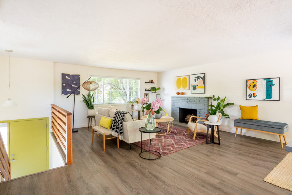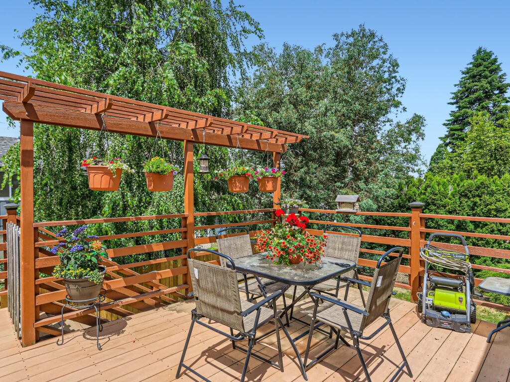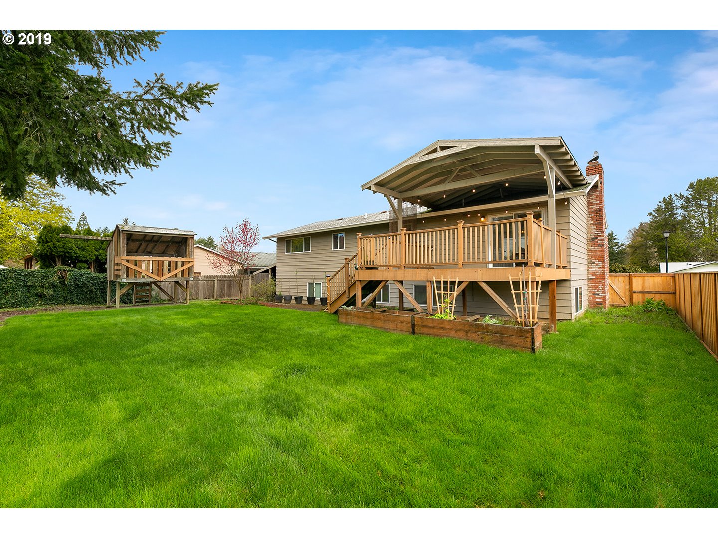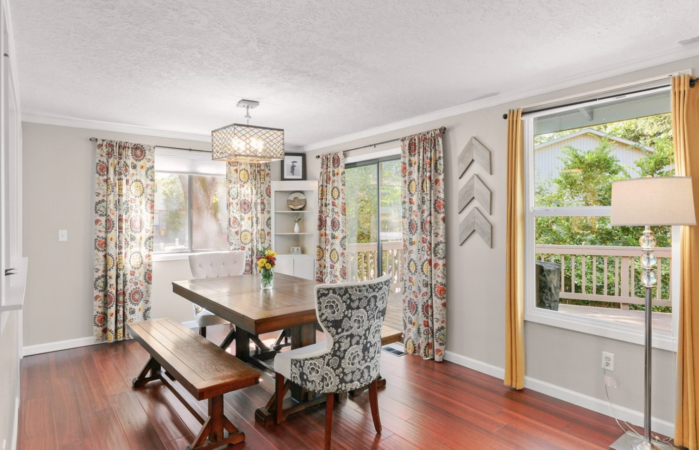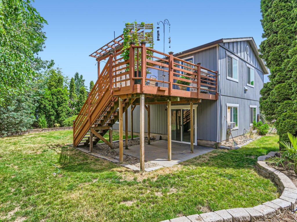 Located less than a mile from the fun shops and eateries of Multnomah Village, you’ll find this swanky mid-century split level on a park-like lot! Enjoy entertaining in the large living room with inlaid wood floors, slate tile, a cozy fireplace, and an oversized picture window that captures the treetop views. The expansive covered deck makes for easy indoor-outdoor living with its connection to the kitchen and dining area, and overlooks the lush backyard with its apple and plum trees, large shed with electrical, and sunny play and gardening space.