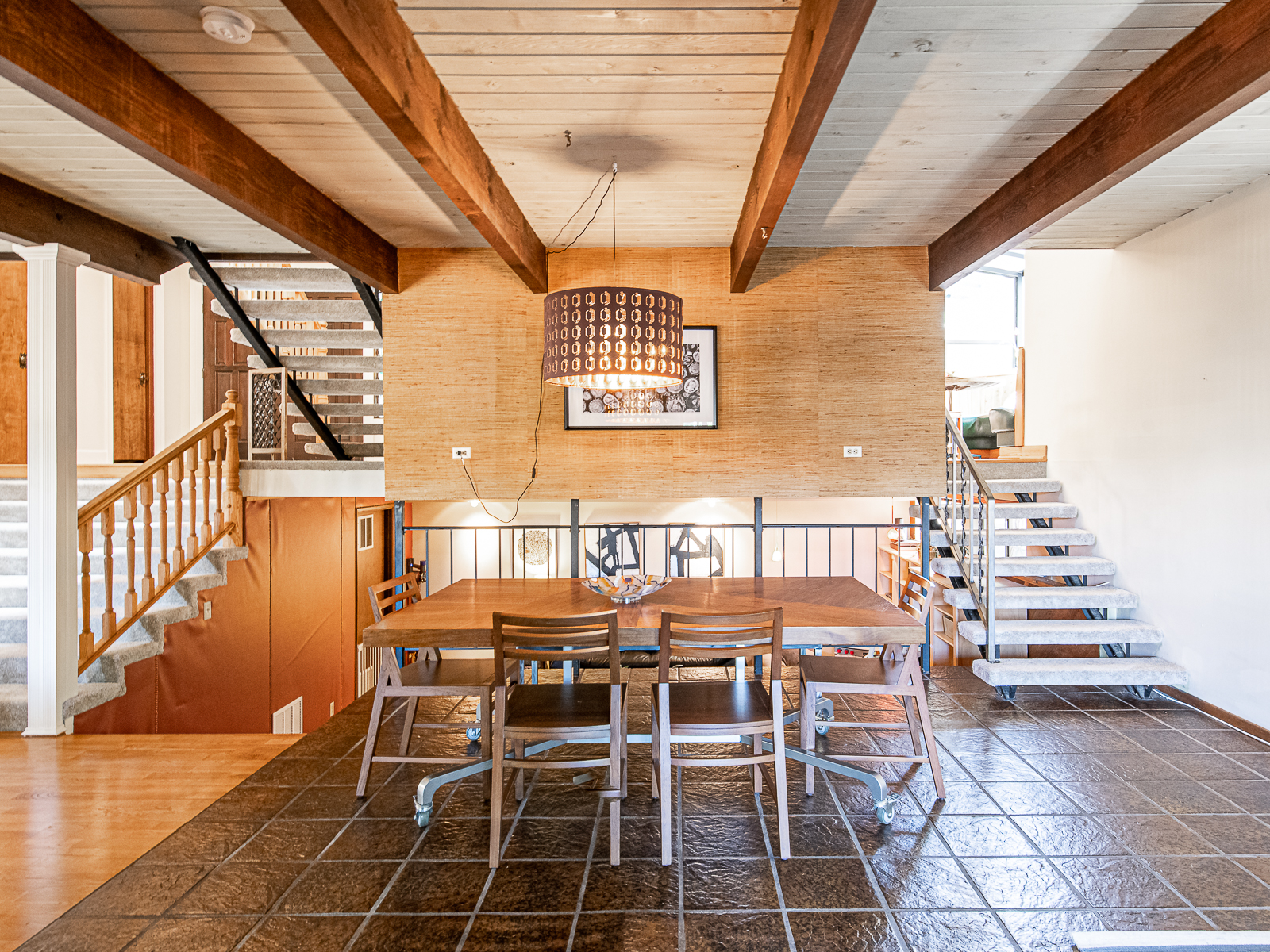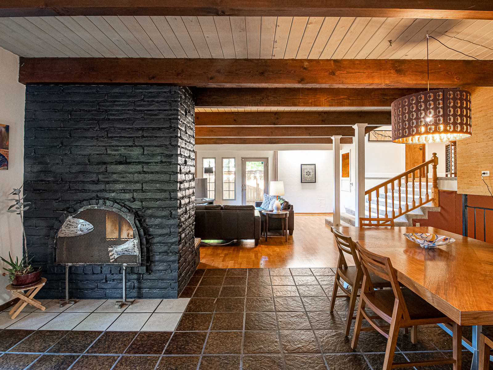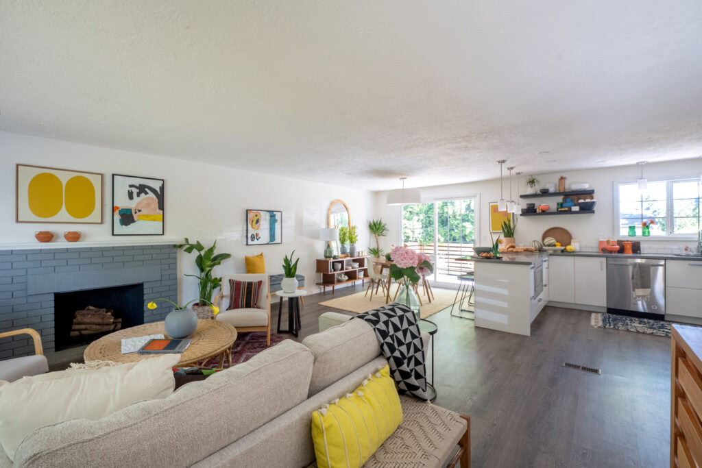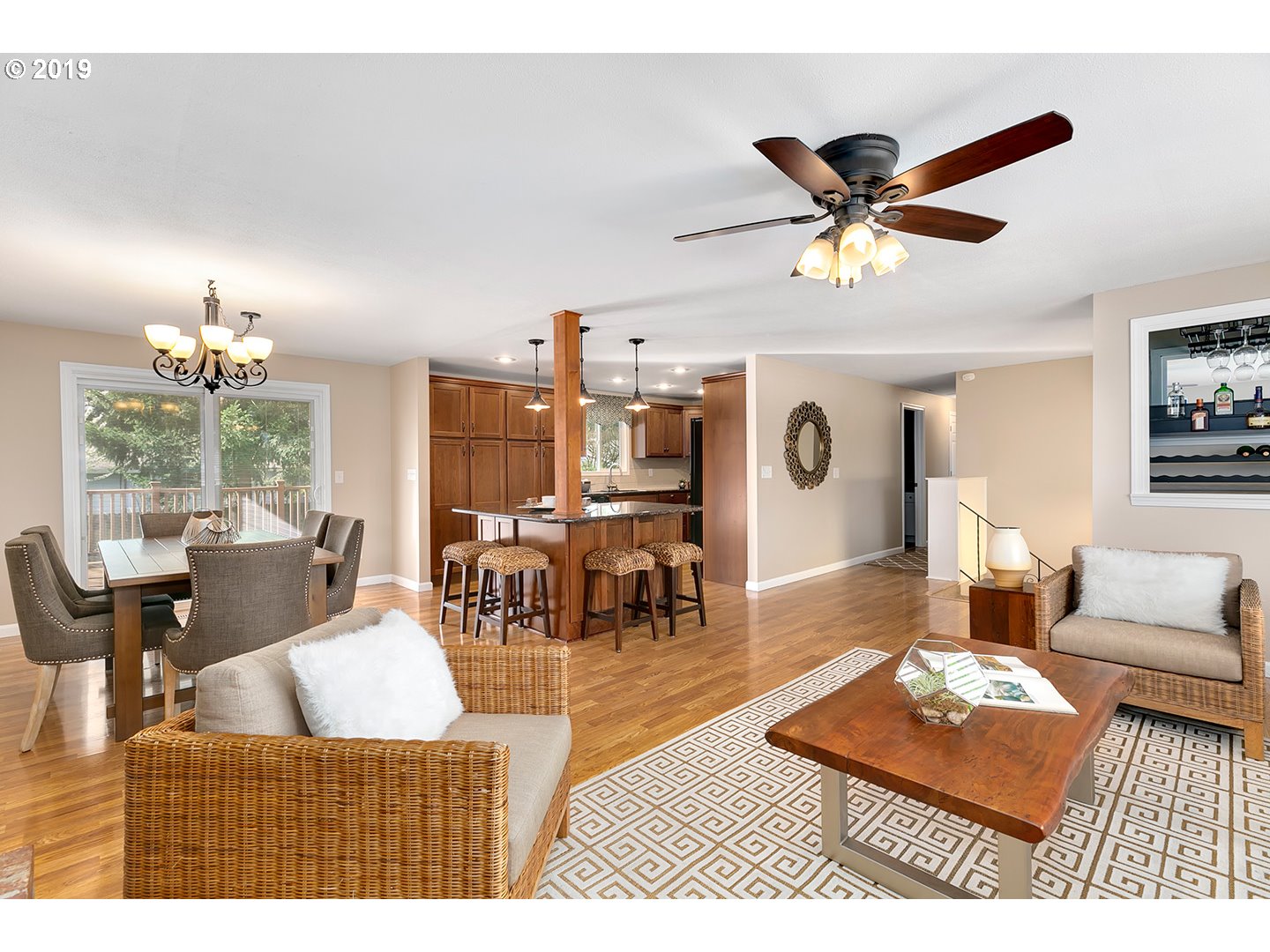 Located less than a mile from the fun shops and eateries of Multnomah Village, you’ll find this swanky mid-century split level on a park-like lot! Enjoy entertaining in the large living room with inlaid wood floors, slate tile, a cozy fireplace, and an oversized picture window that captures the treetop views. The expansive covered deck makes for easy indoor-outdoor living with its connection to the kitchen and dining area, and overlooks the lush backyard with its apple and plum trees, large shed with electrical, and sunny play and gardening space.