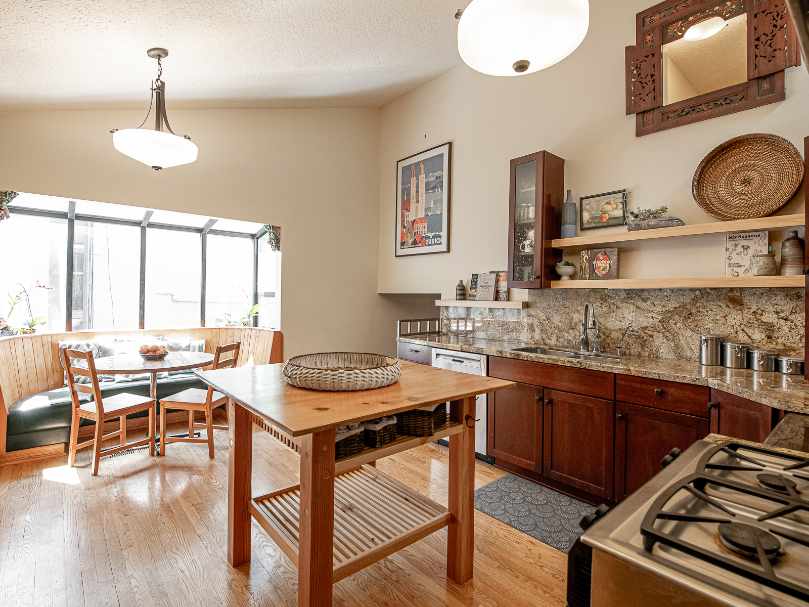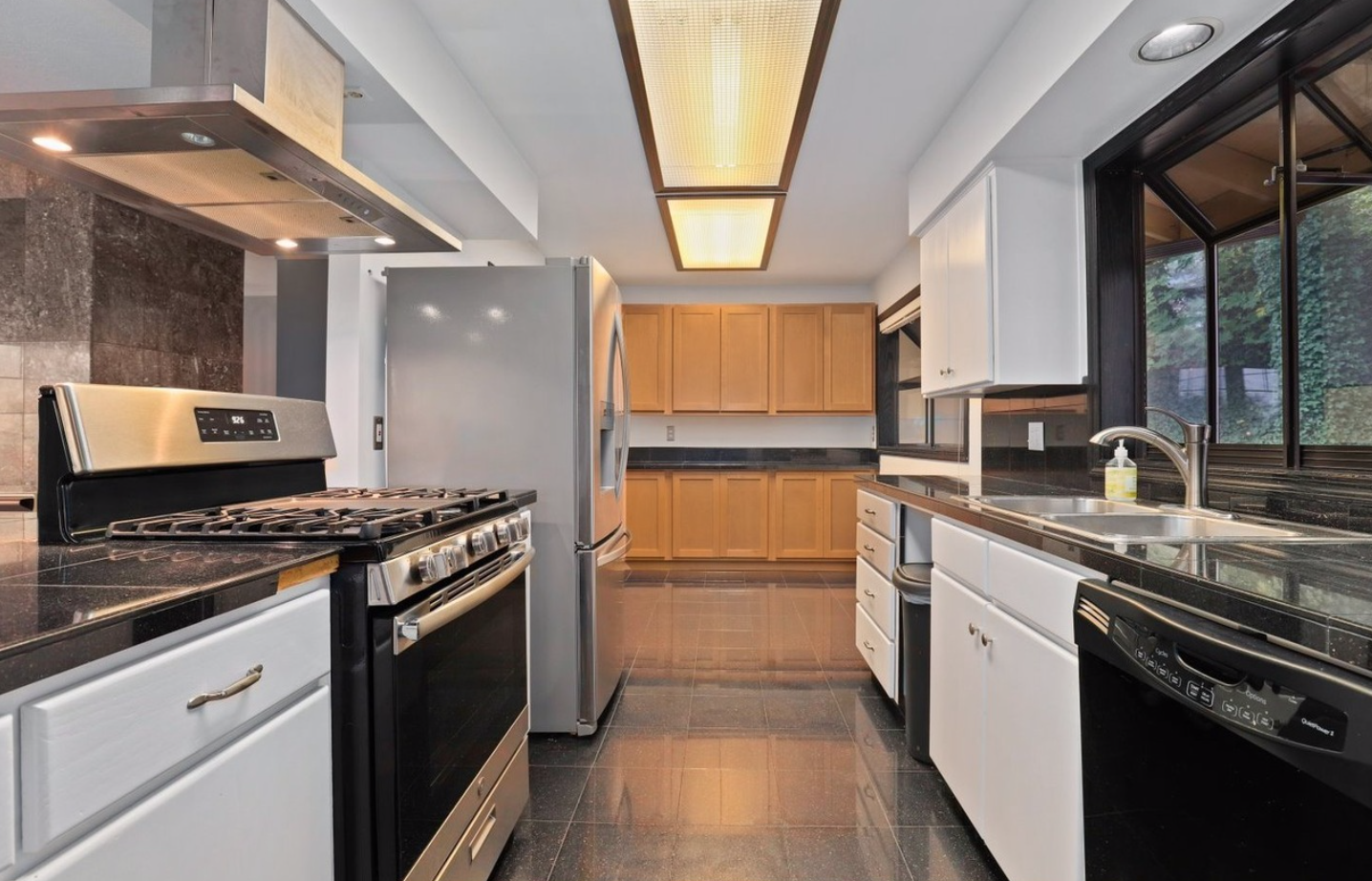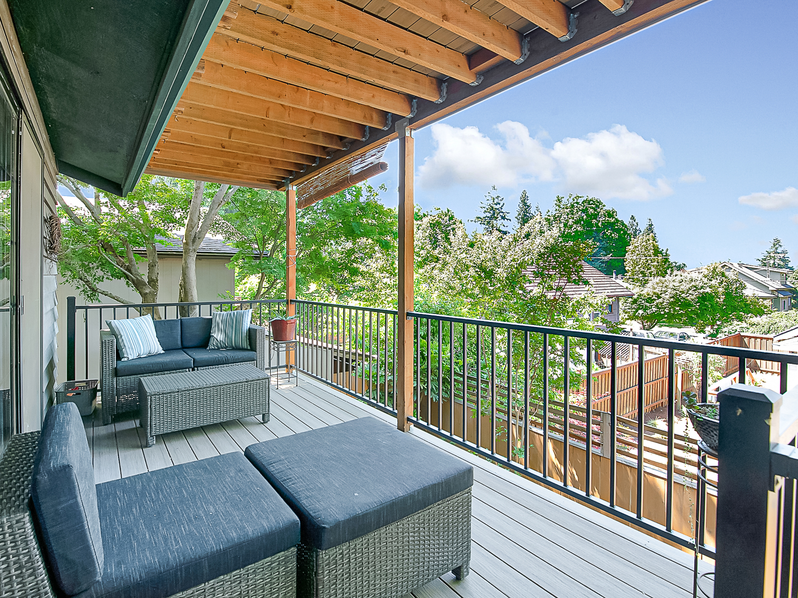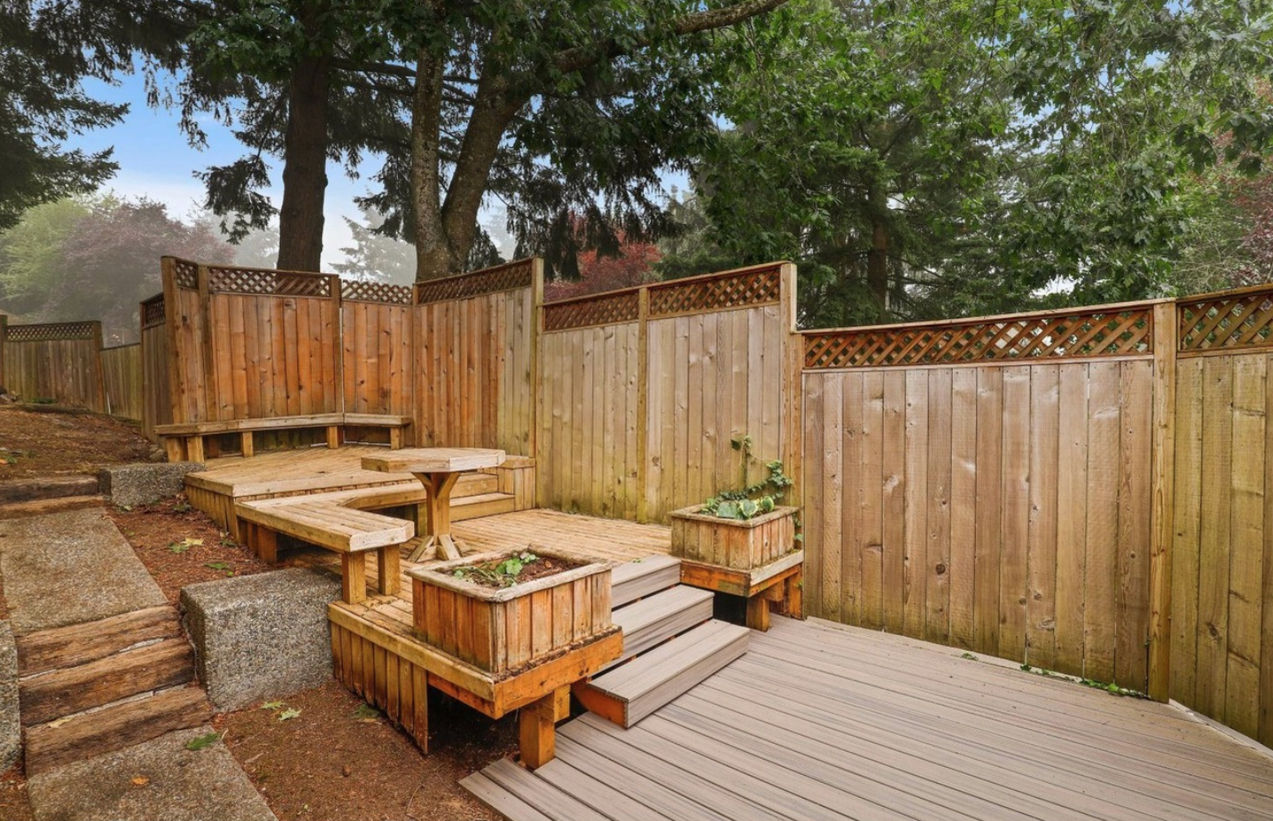Located less than a mile from the fun shops and eateries of Multnomah Village, you’ll find this swanky mid-century split level on a park-like lot! Enjoy entertaining in the large living room with inlaid wood floors, slate tile, a cozy fireplace, and an oversized picture window that captures the treetop views. The expansive covered deck makes for easy indoor-outdoor living with its connection to the kitchen and dining area, and overlooks the lush backyard with its apple and plum trees, large shed with electrical, and sunny play and gardening space.
