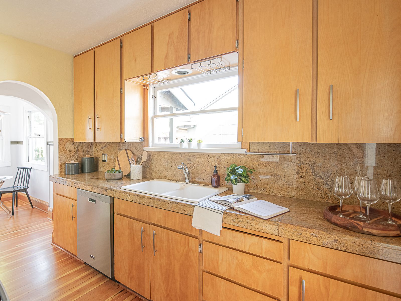 It’s ideally-located in a quiet neighborhood on a corner lot with ample space on all four sides. Sunlight is abundant and flows easily into all three levels through newer, efficient, double-paned windows. Mature, low-maintenance, professional landscaping in the front provides year-round beauty and appeal, and the wide (shared) driveway leads to a rebuilt, detached garage and large parking space. You can access the kitchen directly from the back door with groceries, or straight to the basement with muddy clothes from your latest PNW adventure.