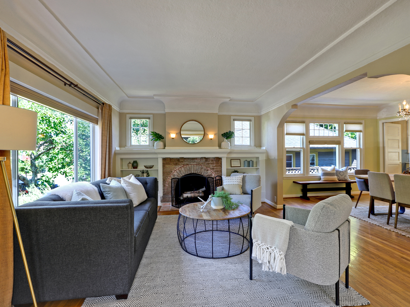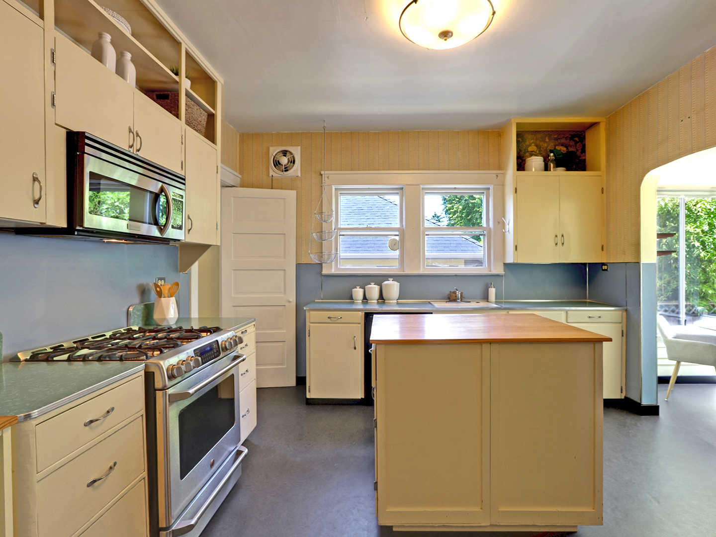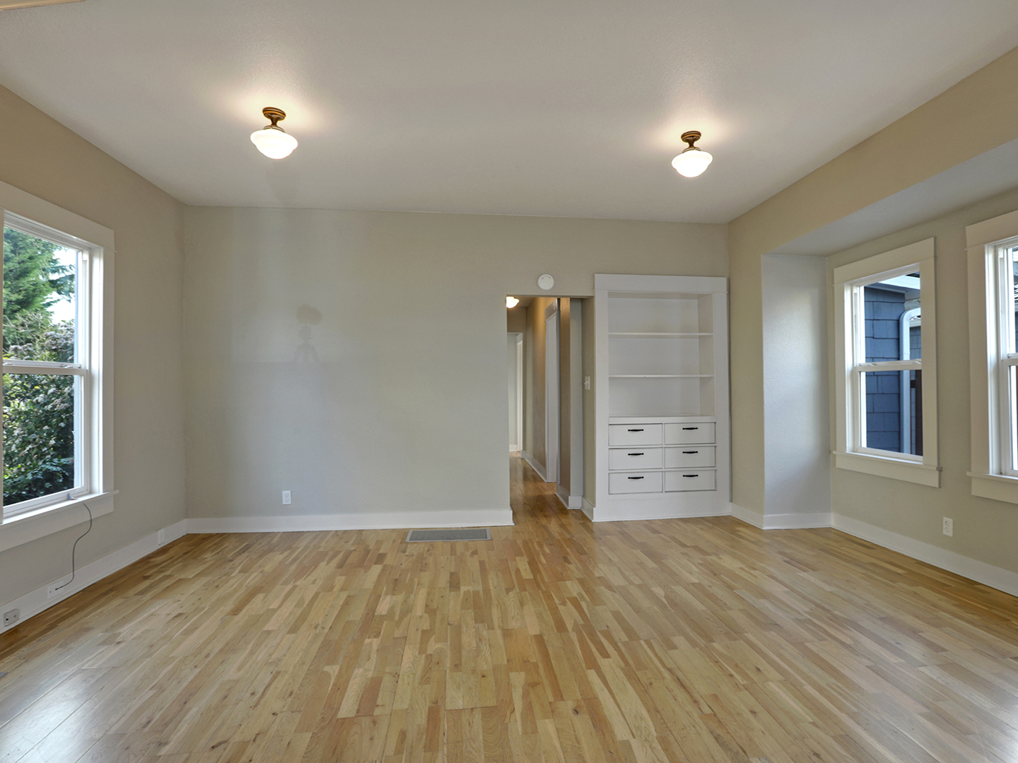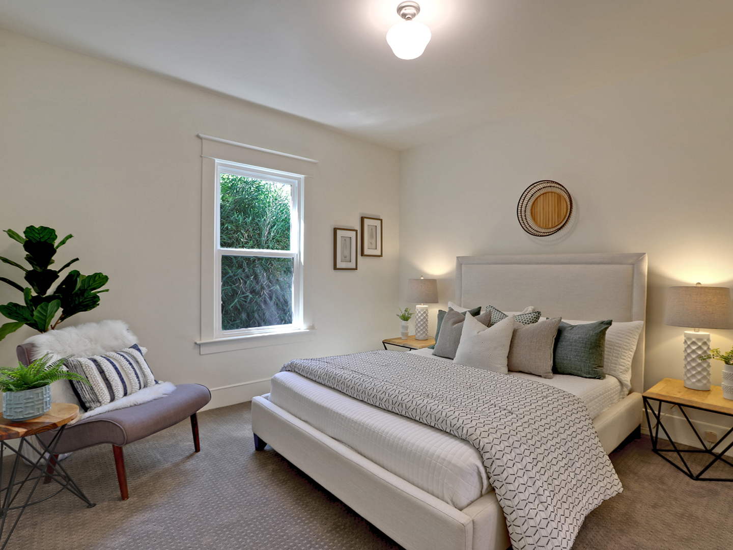 This one level Sellwood condo has it all: a spacious main living space with half bath for guests, a modern kitchen with quartz counters and stainless steel appliances, two generous bedrooms that are tucked away and quiet, a large bathroom with soaking tub, and in-unit laundry.