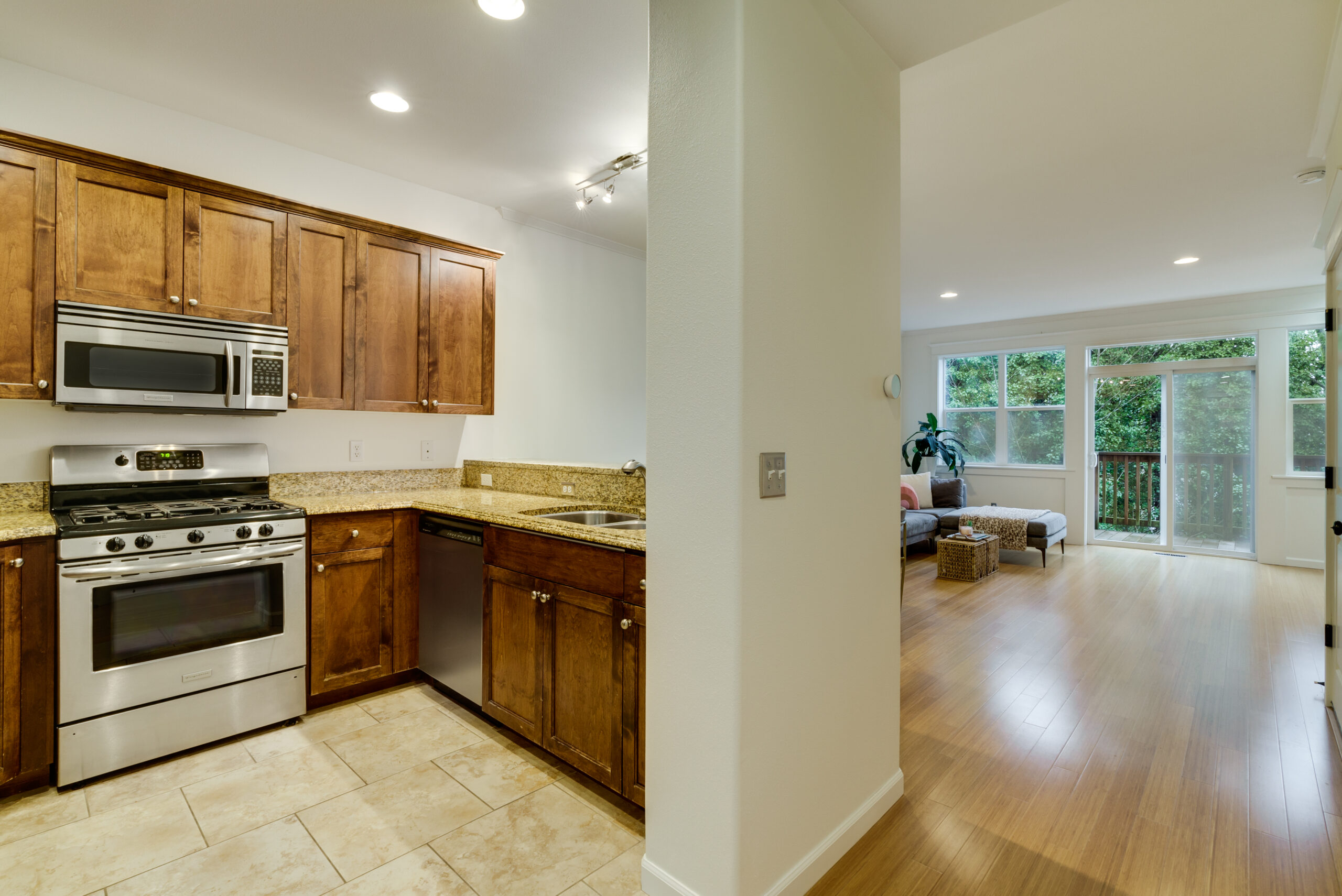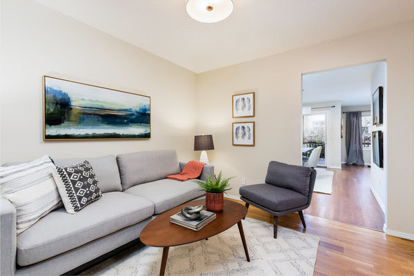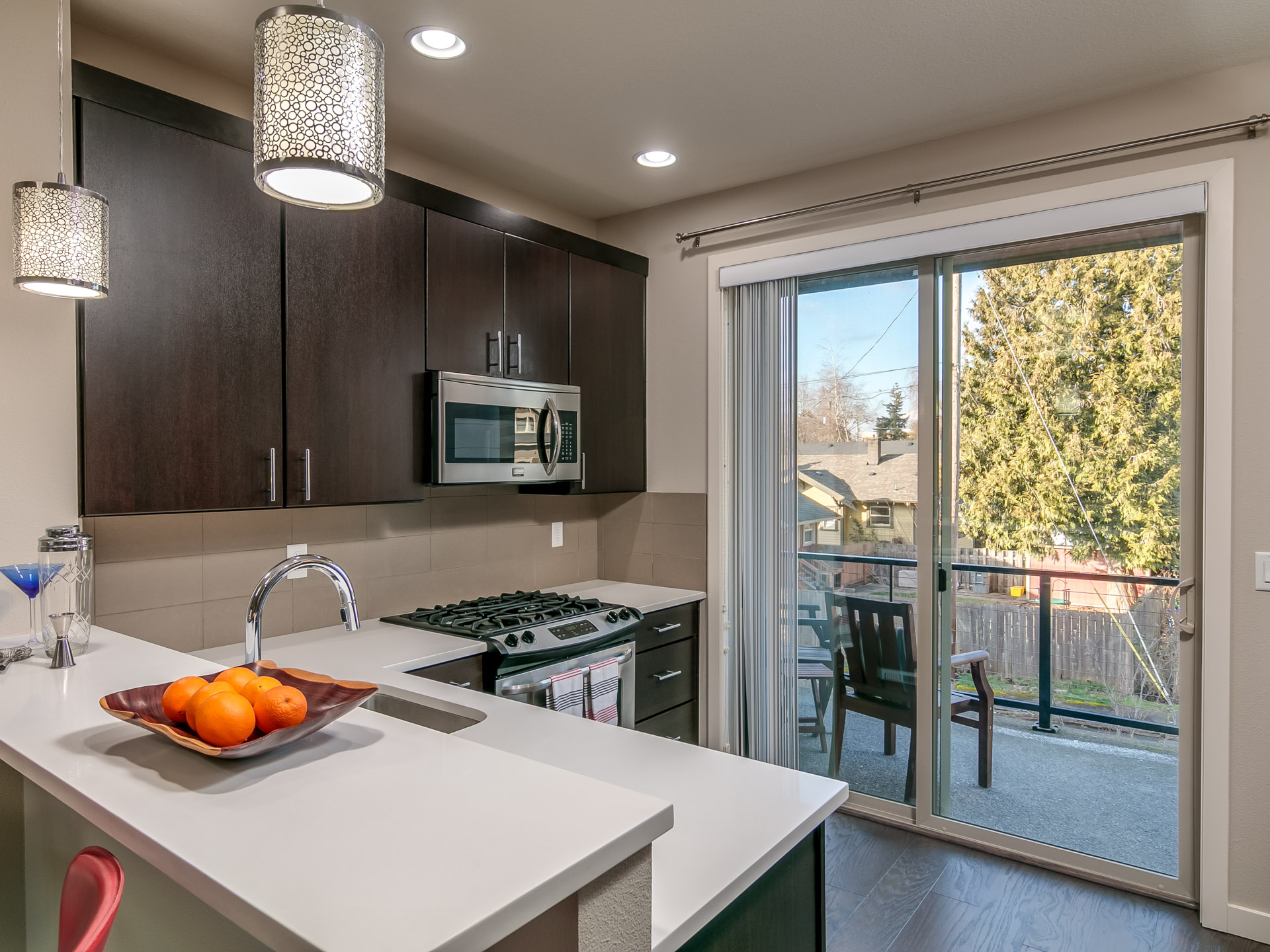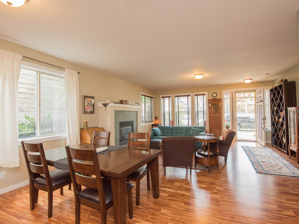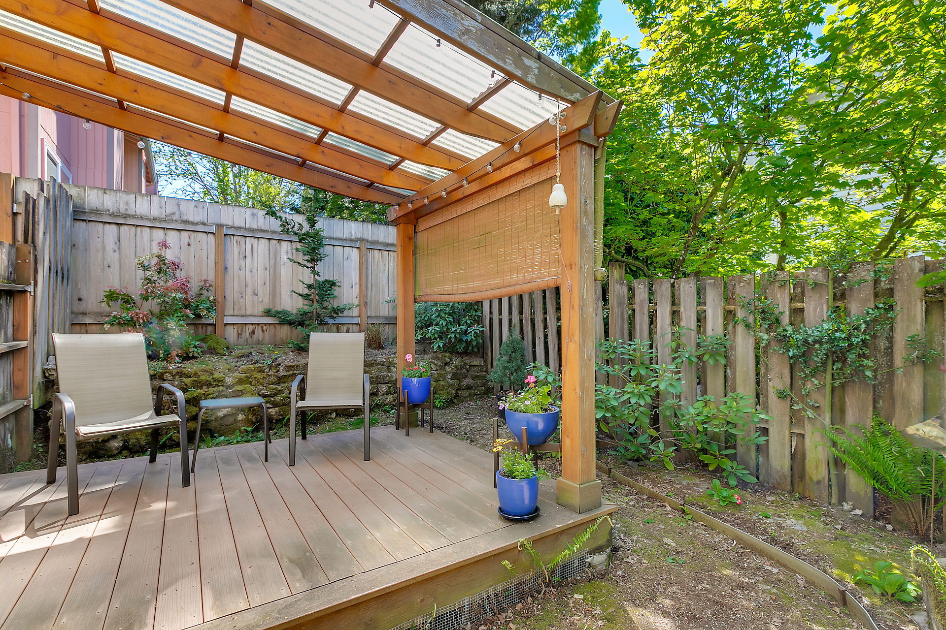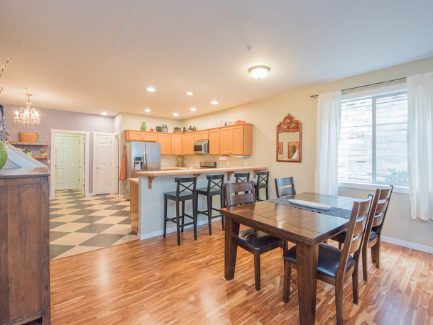 This upgraded townhome offers elegant luxury at an affordable price! Step through the front door and immediately notice the care and attention to detail, with updated engineered wood flooring, smooth-finished walls, and a beautifully tiled fireplace adjacent to your private backyard access! The yard is a rarity for this property type, and it is meticulously landscaped, wonderfully inviting, and includes a patio for al fresco dining during the summer months.